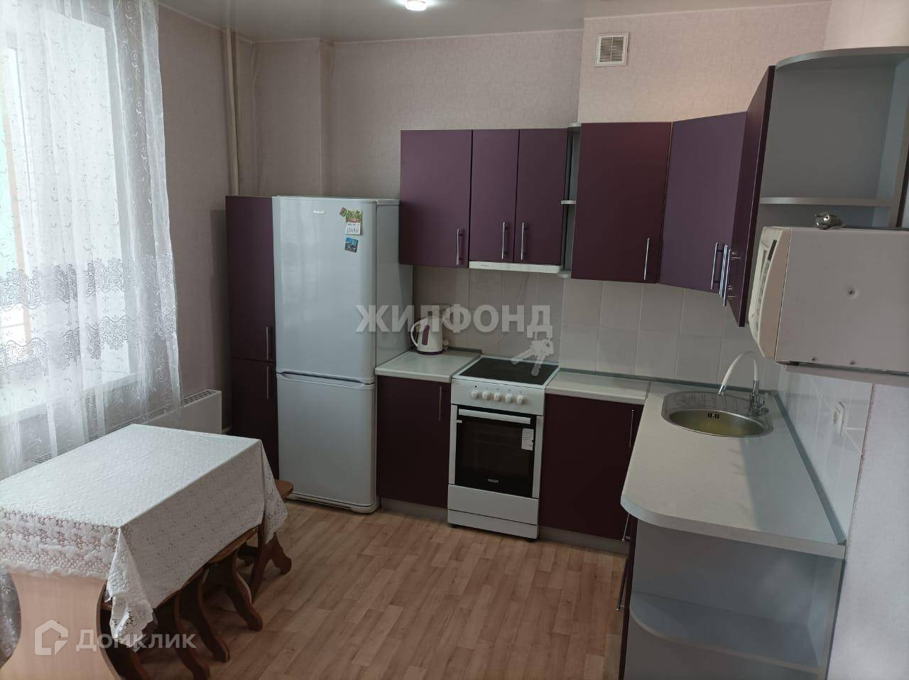 В квартире выполнен современный ремонт из качественных материалов. Потолки натяжные. Кухонный гарнитур выполнен на заказ, имеется бытовая техника, а именно: электро печь, холодильник, микроволновая печь, кухонная вытяжка. Все это мы оставляем новому собственнику. В светлой , просторной комнате установлен кондиционер, имеется шкаф, диван. Также из техники новому владельцу останется стиральная машина. В квартире большая застекленная лоджия.