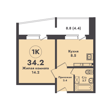 Общая площадь 34.6 м2