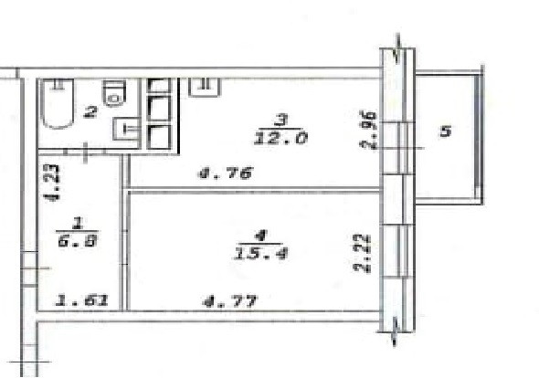 Жилая площадь 15.4 м2