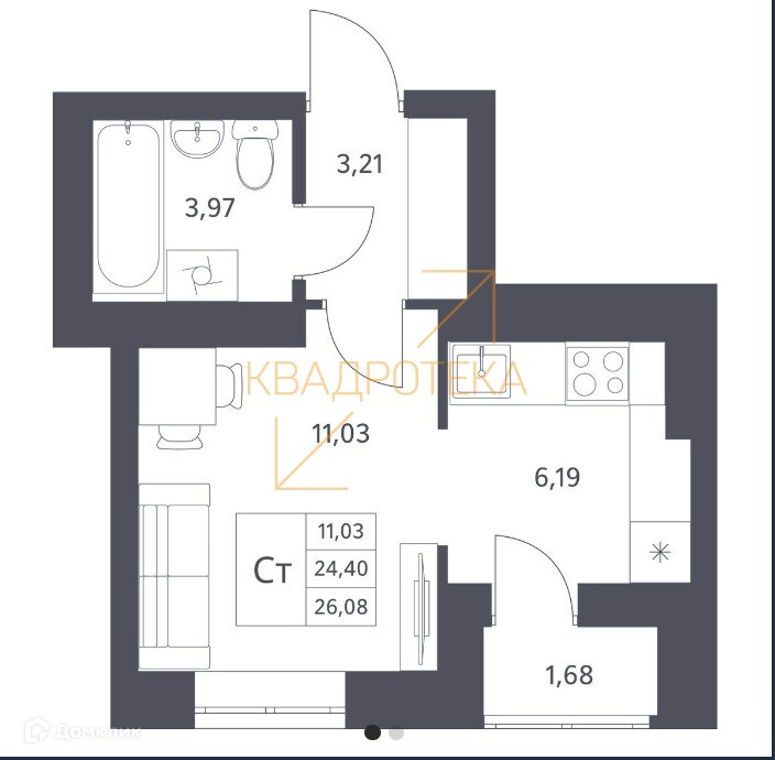 Общая площадь 24.4 м2
