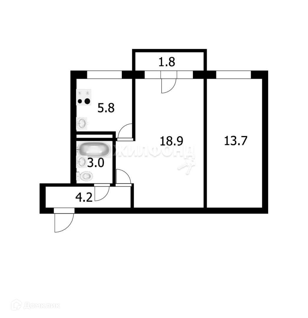 2-комнатная квартира, 45.6 м2, этаж 2 / 5, на продажу в Новосибирске, улица Дмитрия Донского, 37