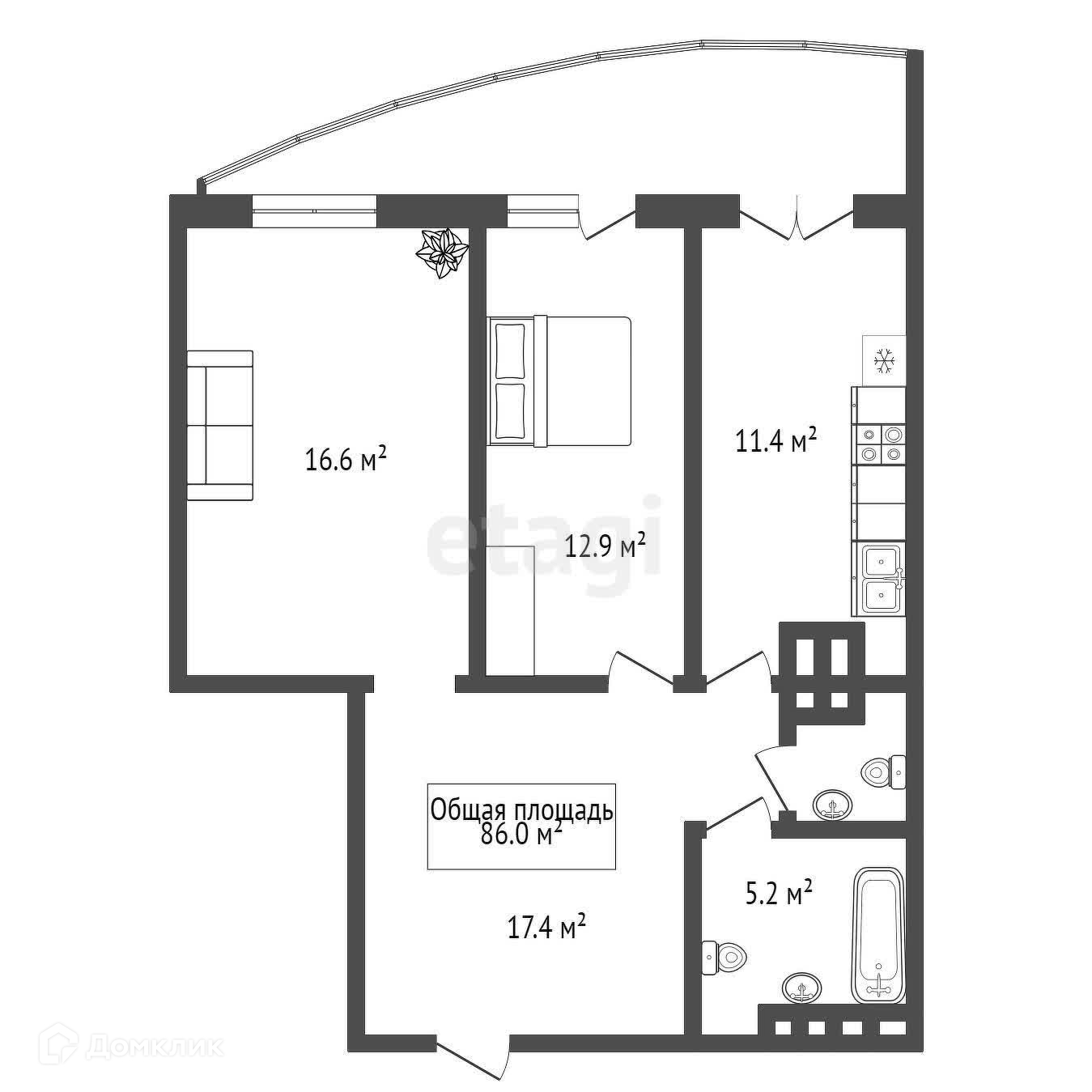 Общая площадь 73.3 м2