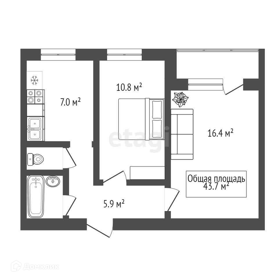 Общая площадь 44 м2