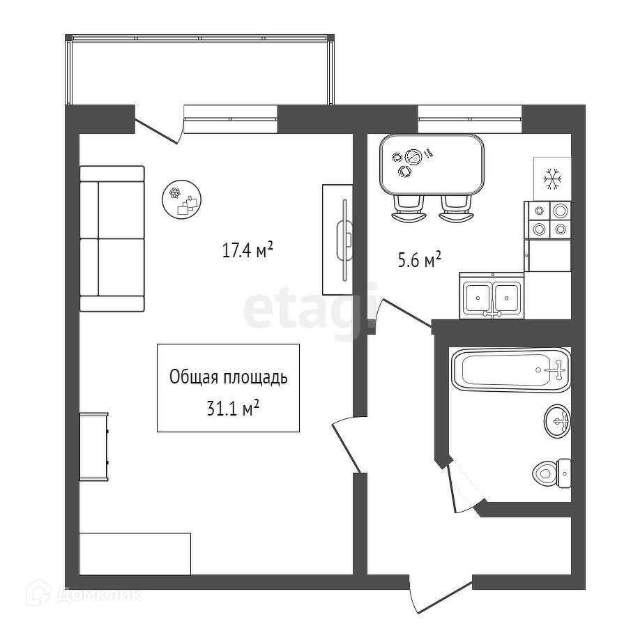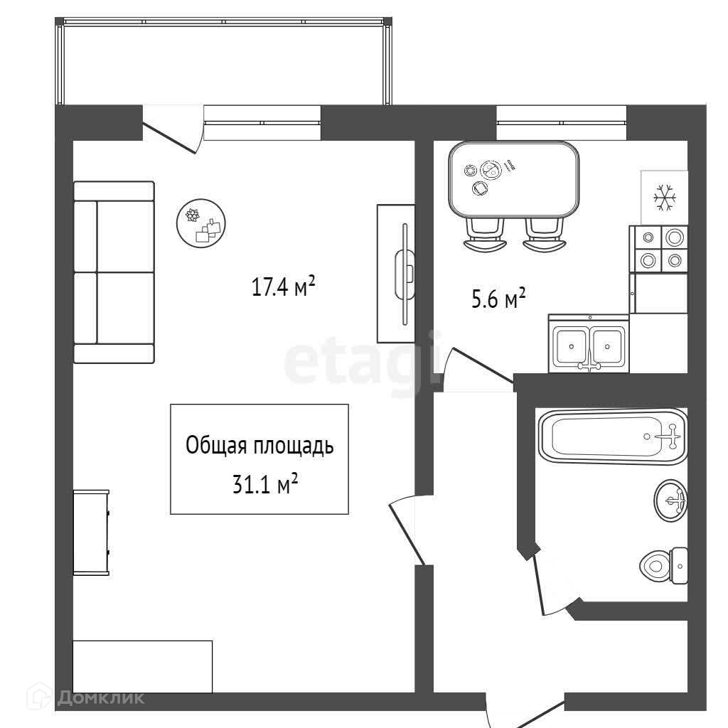 Общая площадь 31.1 м2