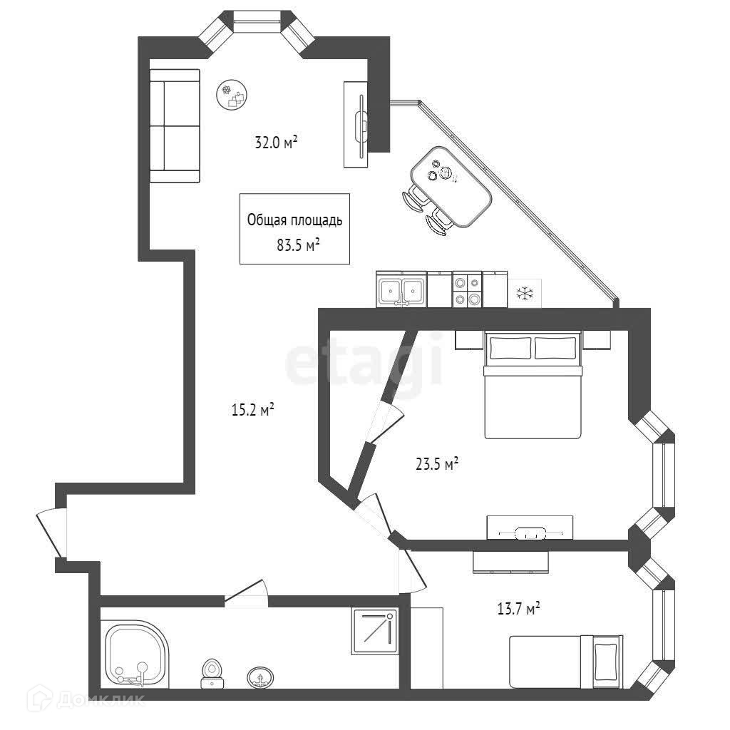 Общая площадь 95 м2
