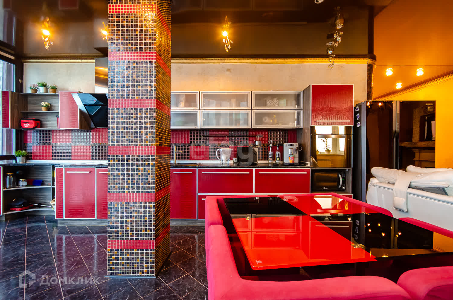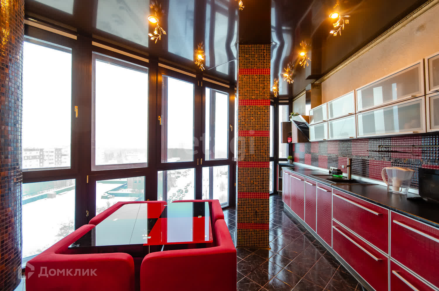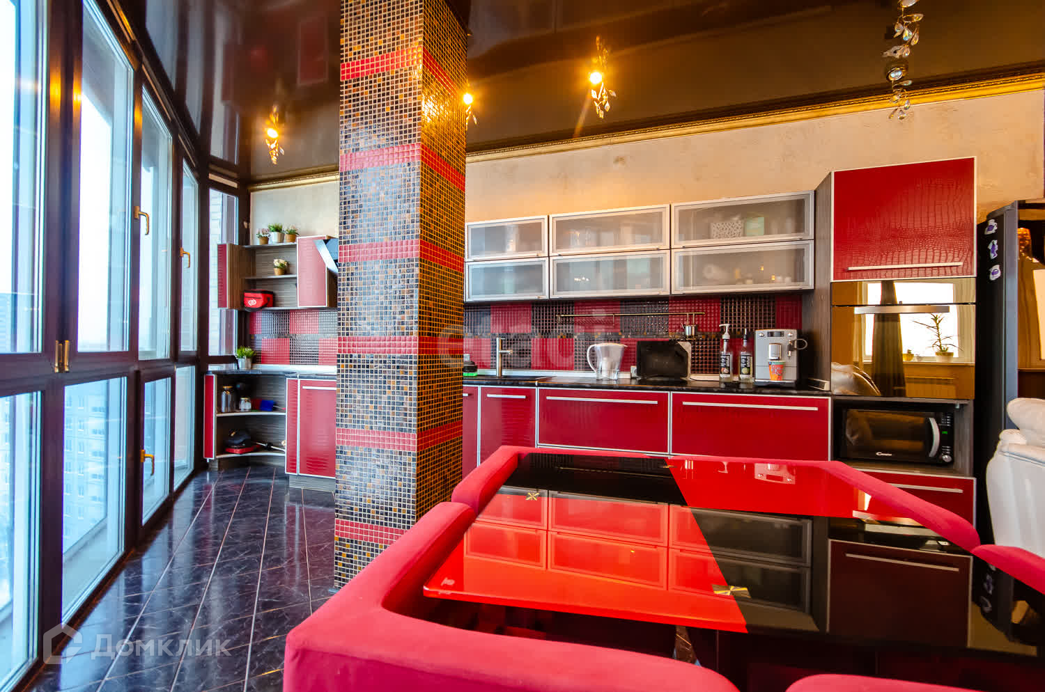 Кухня-гостиная- золото этой квартиры, панорамный вид на город и закаты для Вас в подарок!)