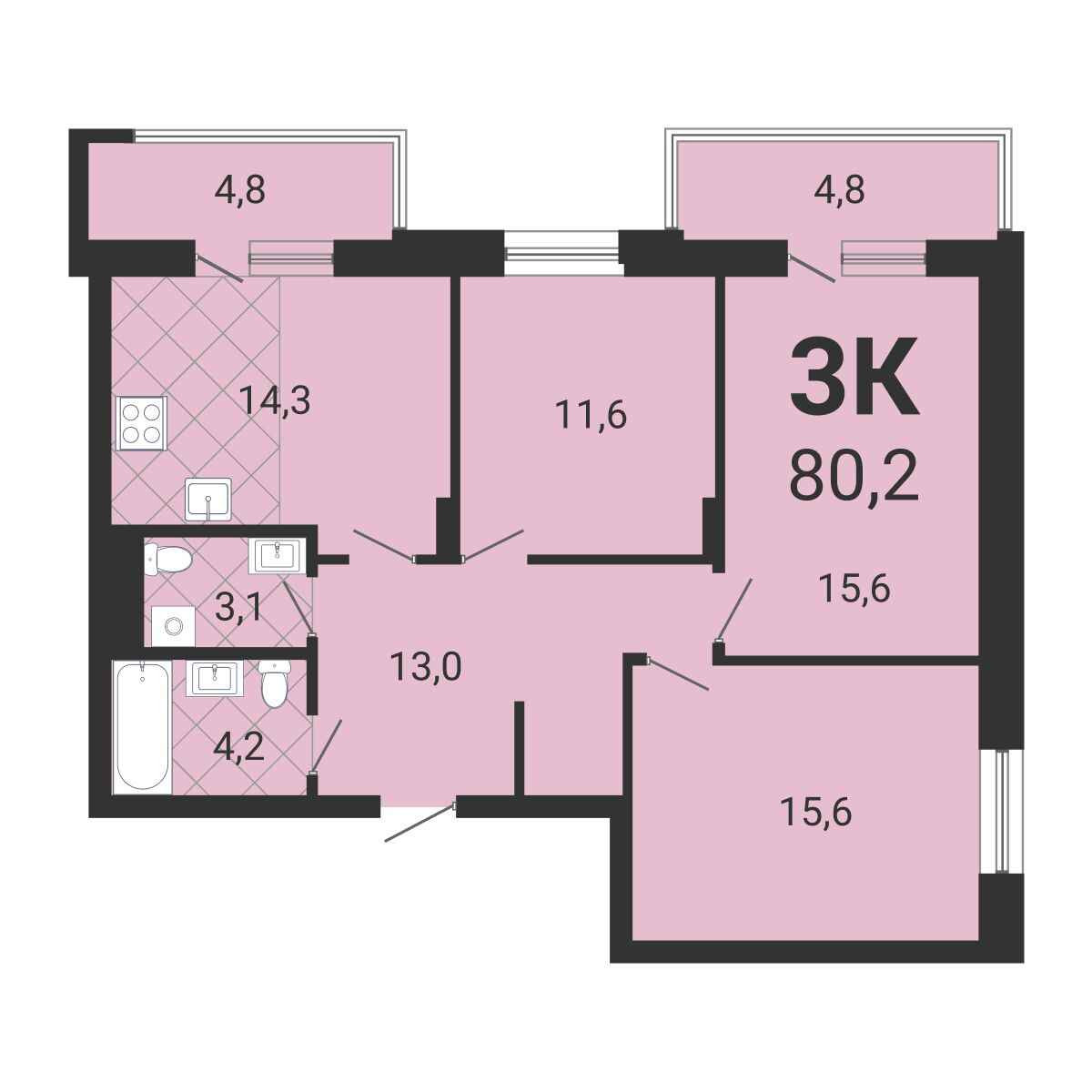 Общая площадь 80.2 м2