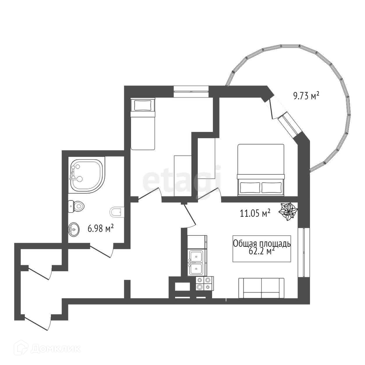 Общая площадь 62.2 м2