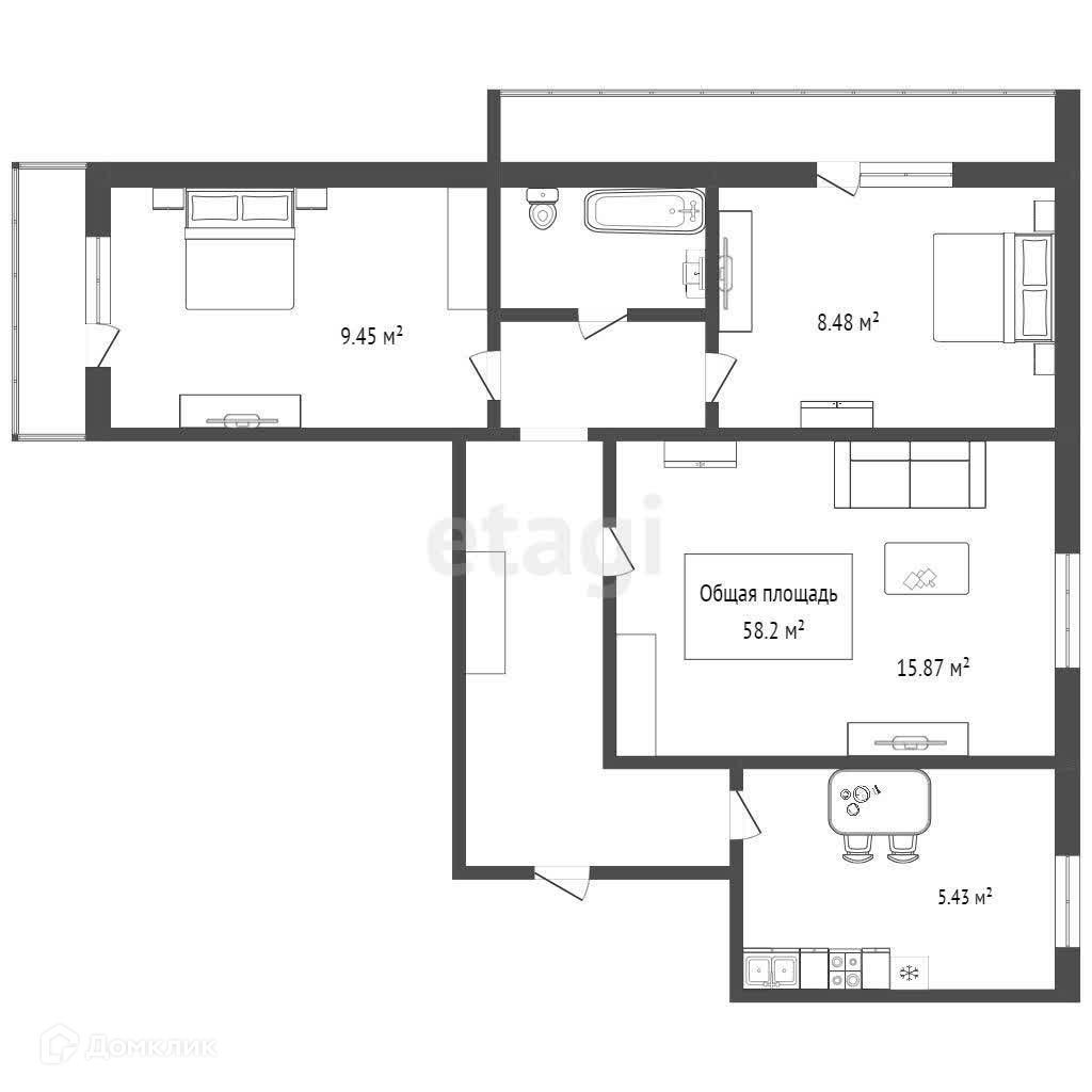 Общая площадь 58.2 м2