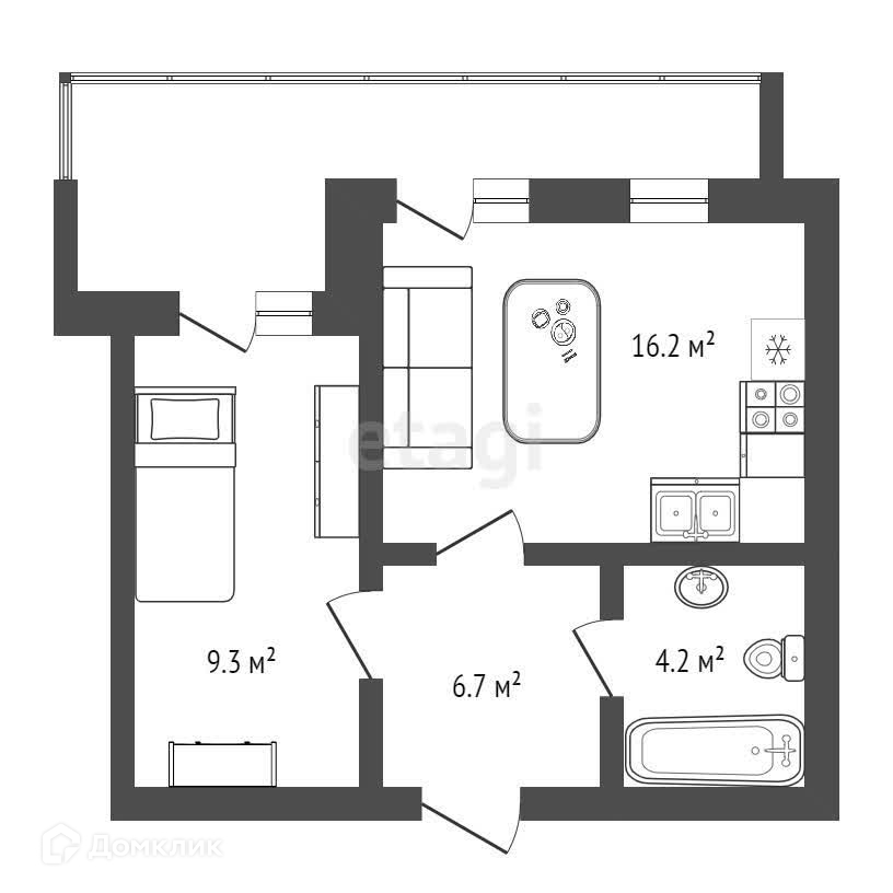Балкон, лоджия 1 балкон