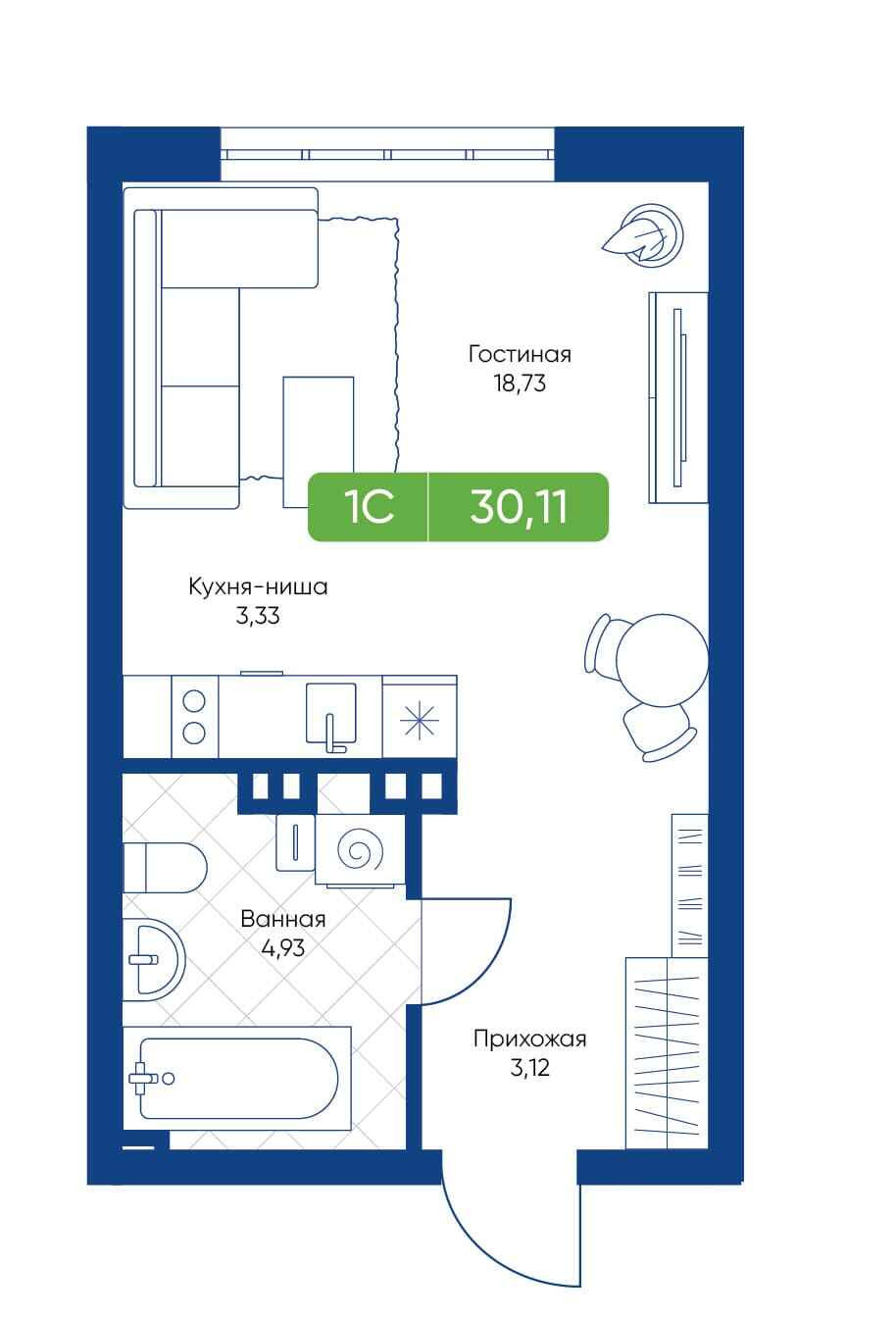 Общая площадь 30.1 м2