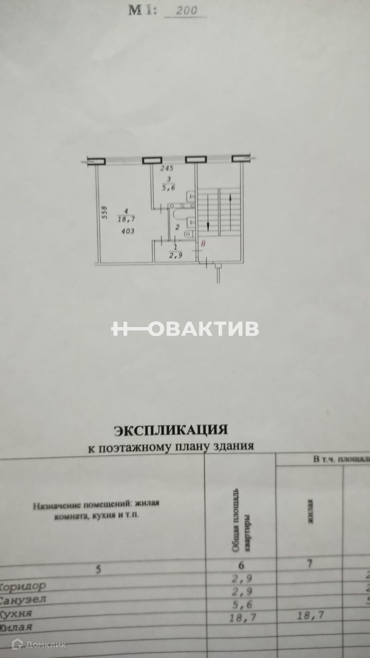1-комнатная квартира, 30 м2, этаж 2 / 5, на продажу в Новосибирске, улица Михаила Перевозчикова, 10