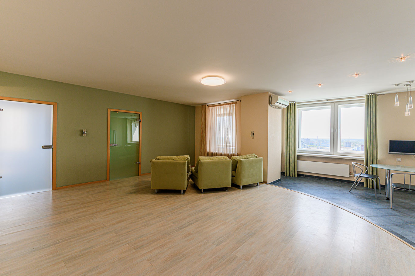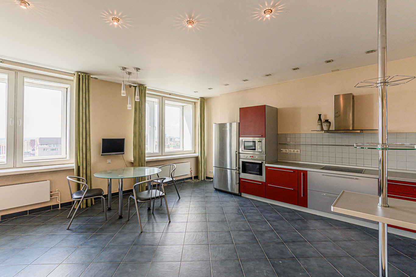 Просторная, теплая и очень светлая, видовая трёхкомнатная квартира-студия, площадью 115 м2. Шикарный панорамный вид на город и реку Обь. Нет и никогда не будет окон напротив, можно даже не закрывать шторы. Высота потолков 3 метра, шесть больших окон на юго-запад. 16-ый этаж. Более 50 метров над землёй, тишина и чистый воздух в центре города! Большая гостиная совмещённая с кухней, комната 9 м2 (кабинет, детская, гардеробная...) и большая спальня. Два санузла. Свободная планировка, без несущих стен. При желании можно легко переделать в 1-2-3-4 комнатную. Солнечная сторона, светло даже в пасмурные дни, поэтому вы всегда будете в хорошем настроении!