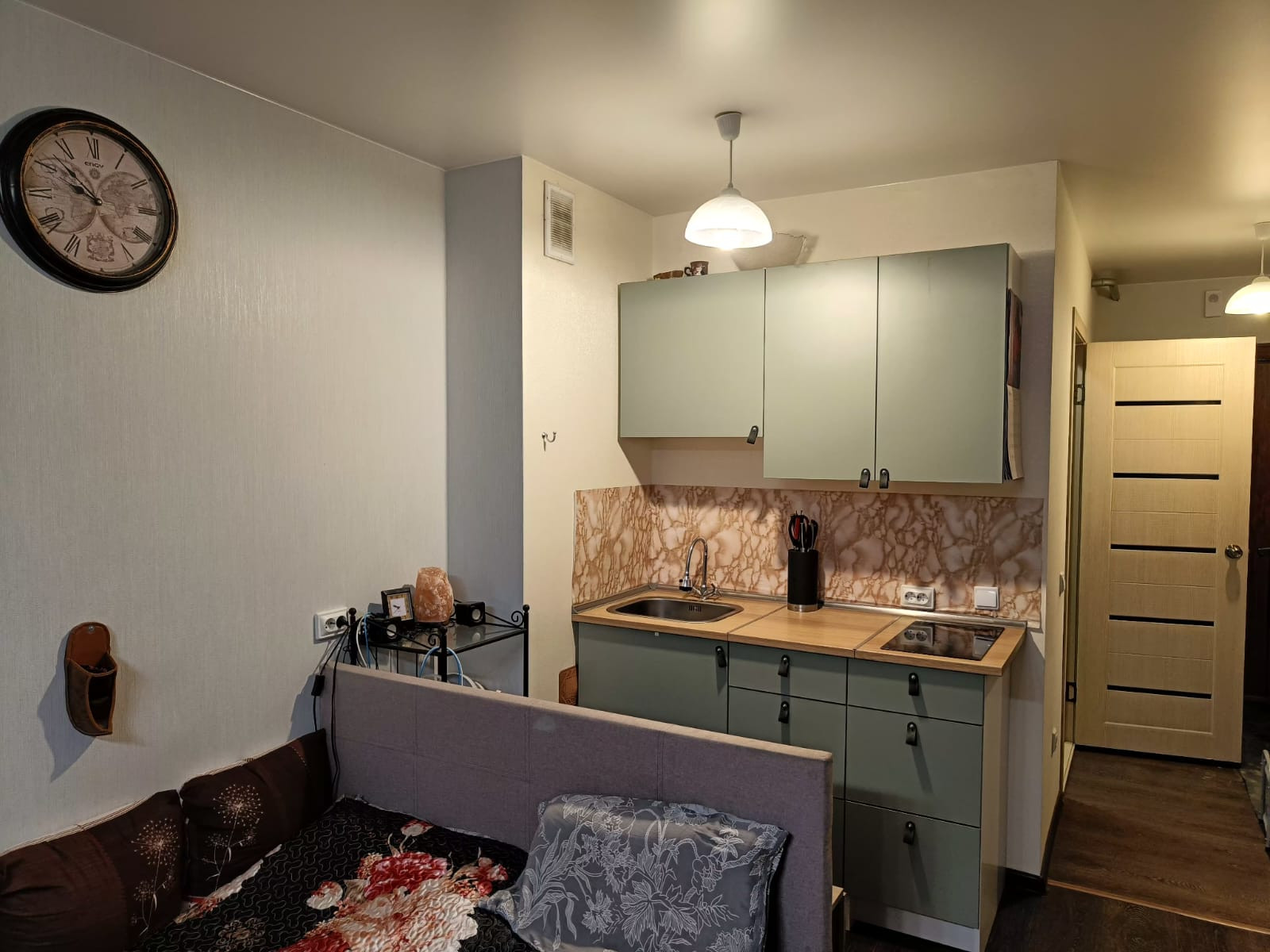 Квартира-студия в новом доме на 13 этаже, солнце до 12 часов дня.