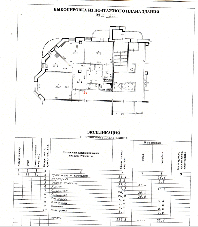 Жилая площадь 83.9 м2
