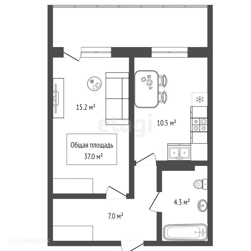Общая площадь 42 м2