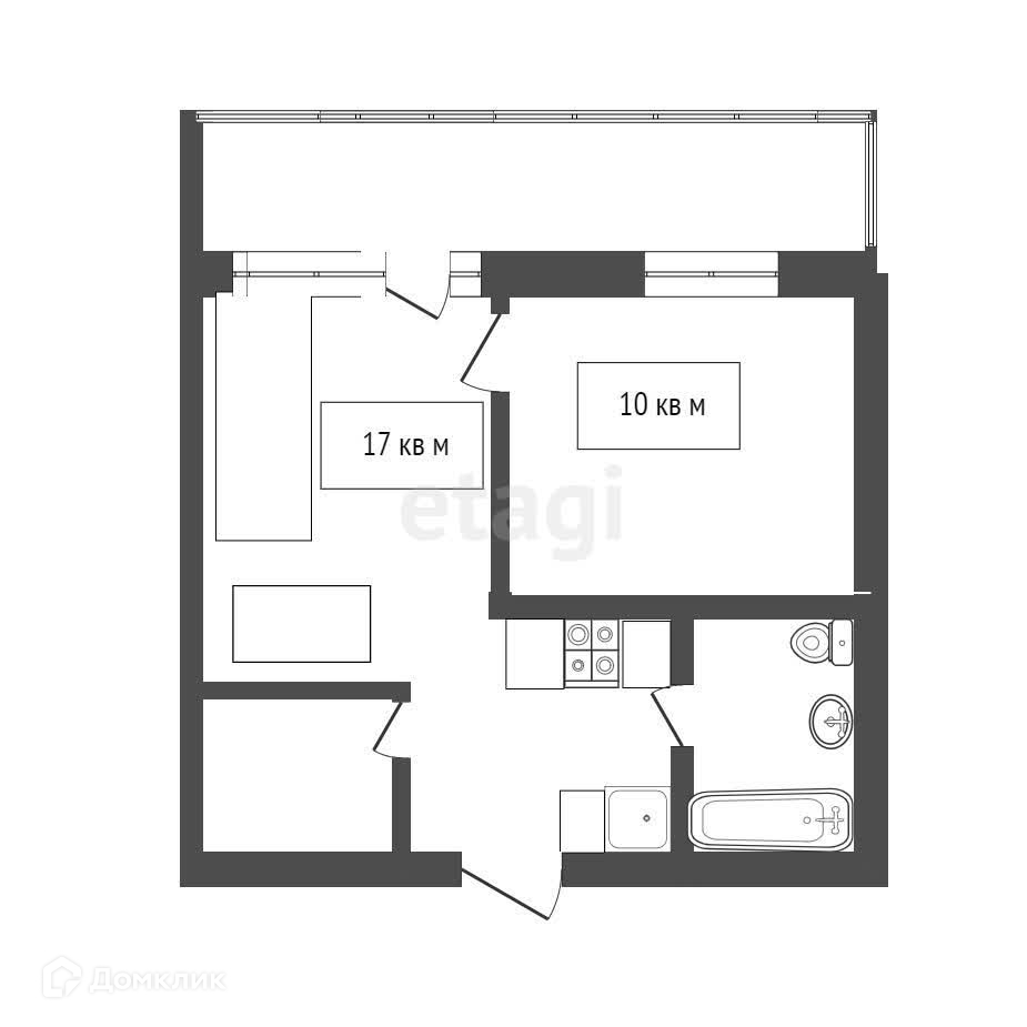 Просторная гостиная 17 м и отдельная спальня 10 м делают проживание комфортным.