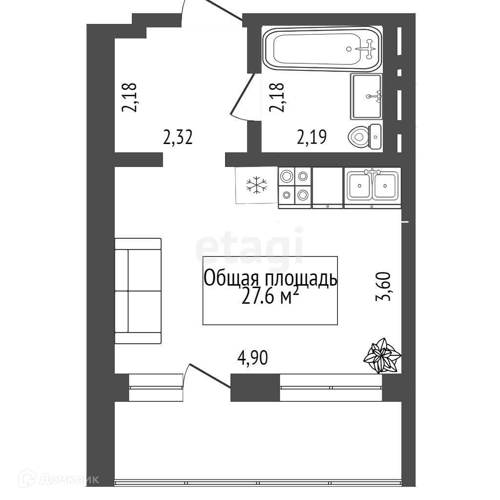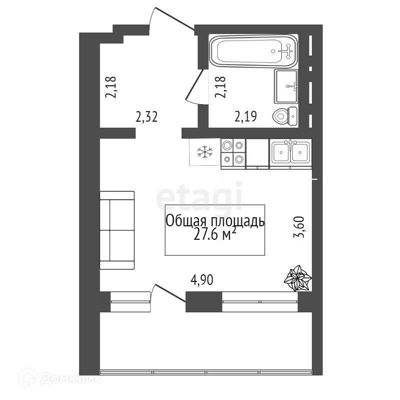 Общая площадь 27.6 м2