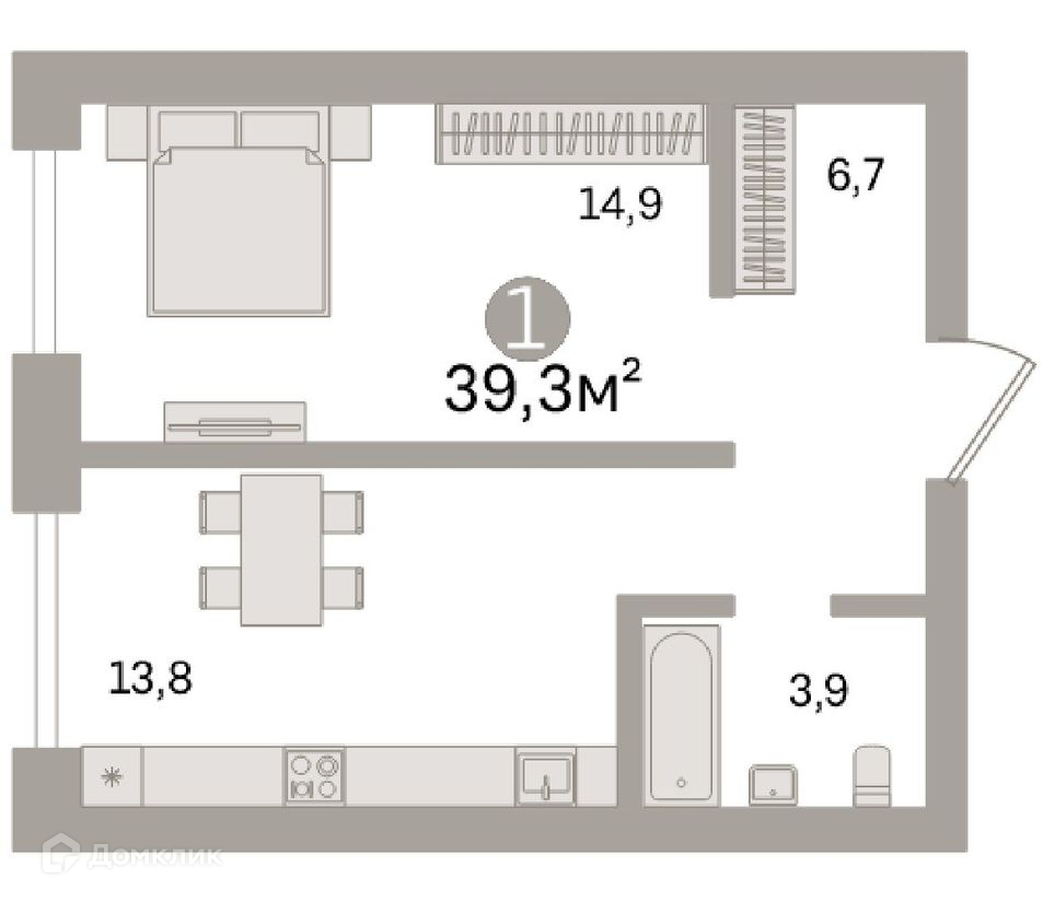Общая площадь 39.3 м2