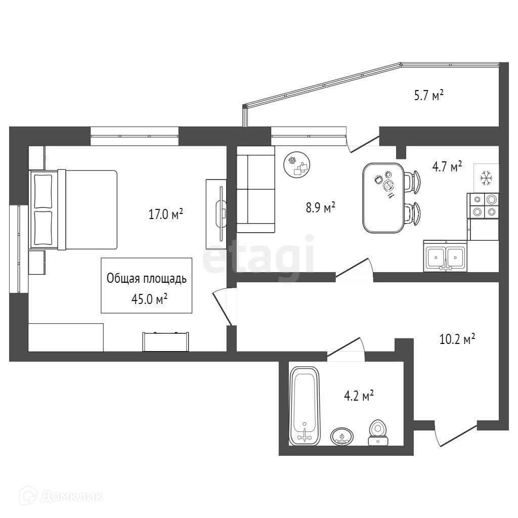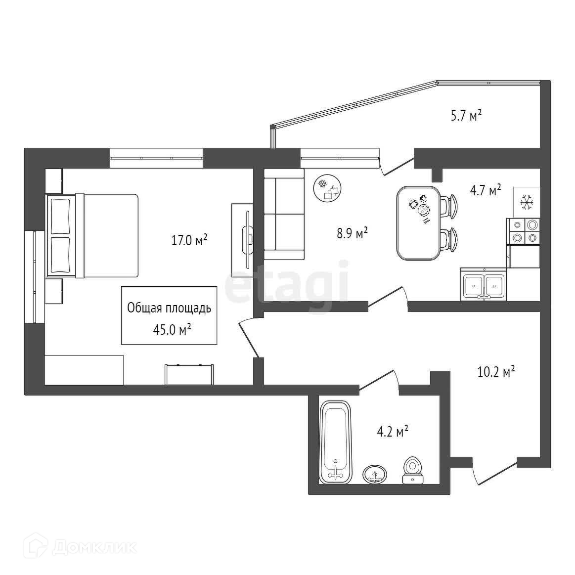 Общая площадь 45 м2