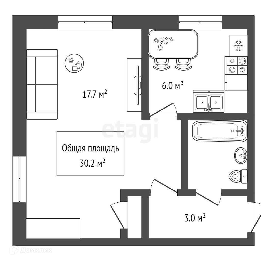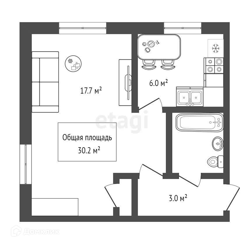 Общая площадь 30.2 м2