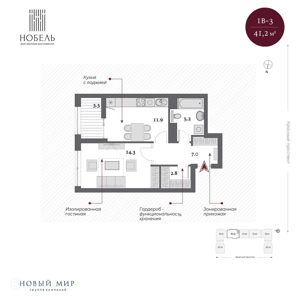 Один из принципов нашей компании: сохранять все лучшее в каждой локации. Архитектурное окружение дома «Нобель» представлено сталинской неоклассикой, именно поэтому специалисты компании «Новый мир» выбрали стиль ар-деко, который называют наследником неоклассицизма и модернизма. «Нобель» — это архитектура, устремленная вверх. 5 башен с величественными шпилями, благородный фасад из натурального гранита, увеличенная площадь остекления с применением архитектурного стекла. И — чего не встретишь в других проектах, — роскошная гранитная прогулочная колоннада — второй уровень благоустройства.