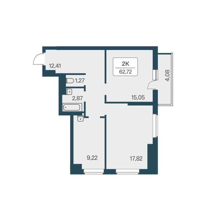 Общая площадь 62.72 м2