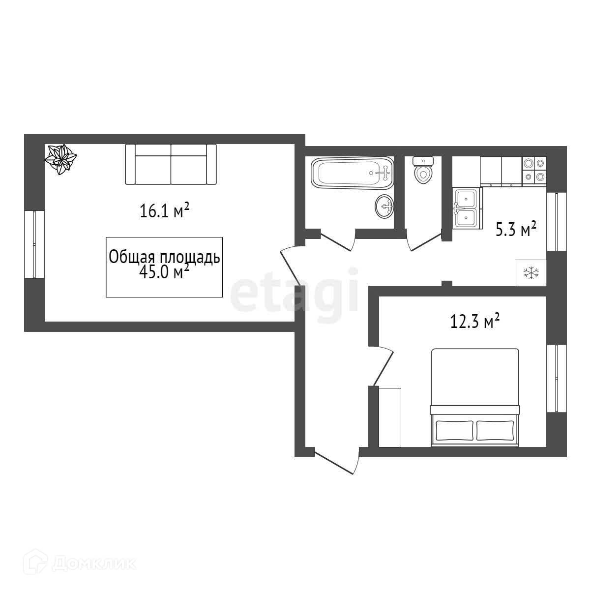 Общая площадь 45 м2