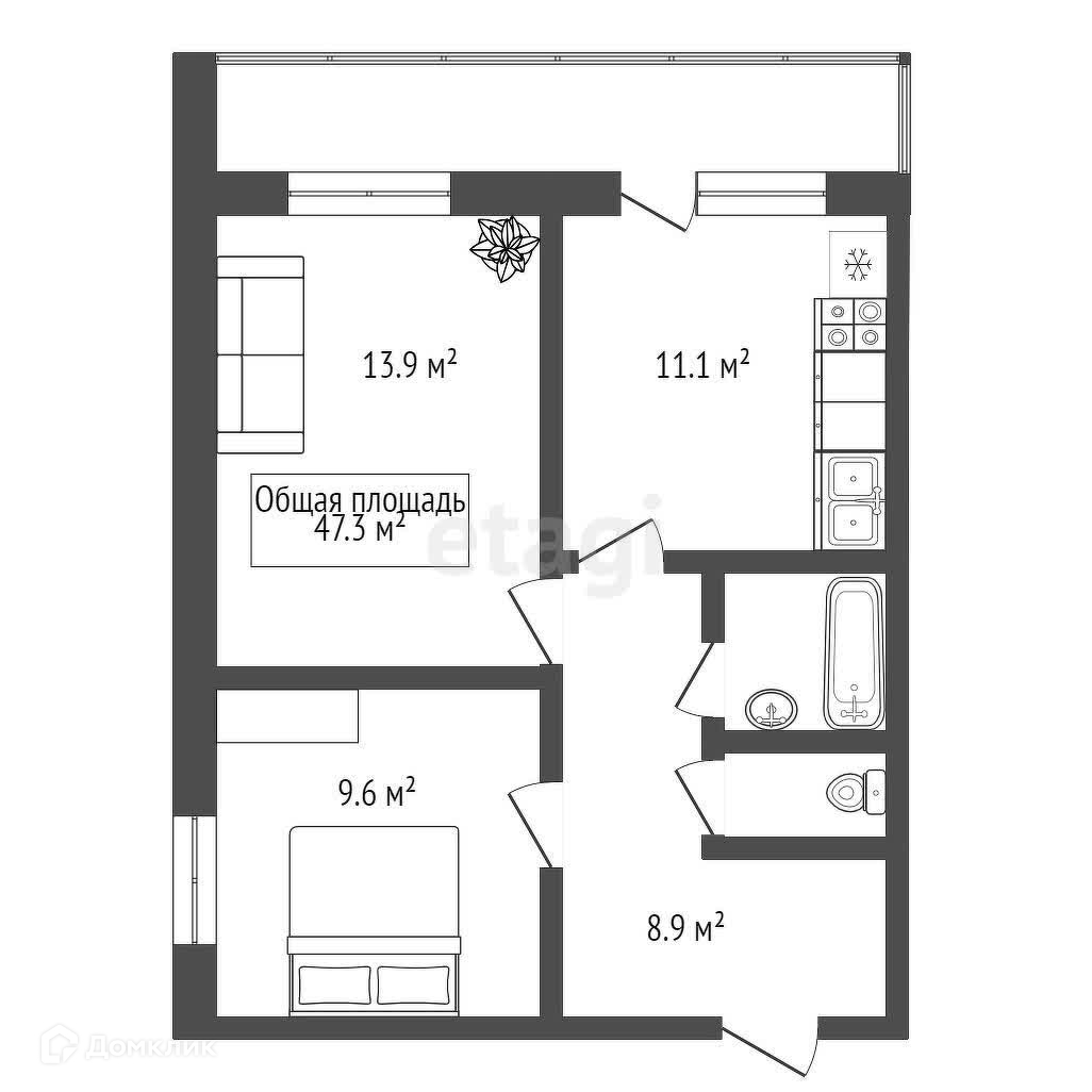 Общая площадь 47.3 м2