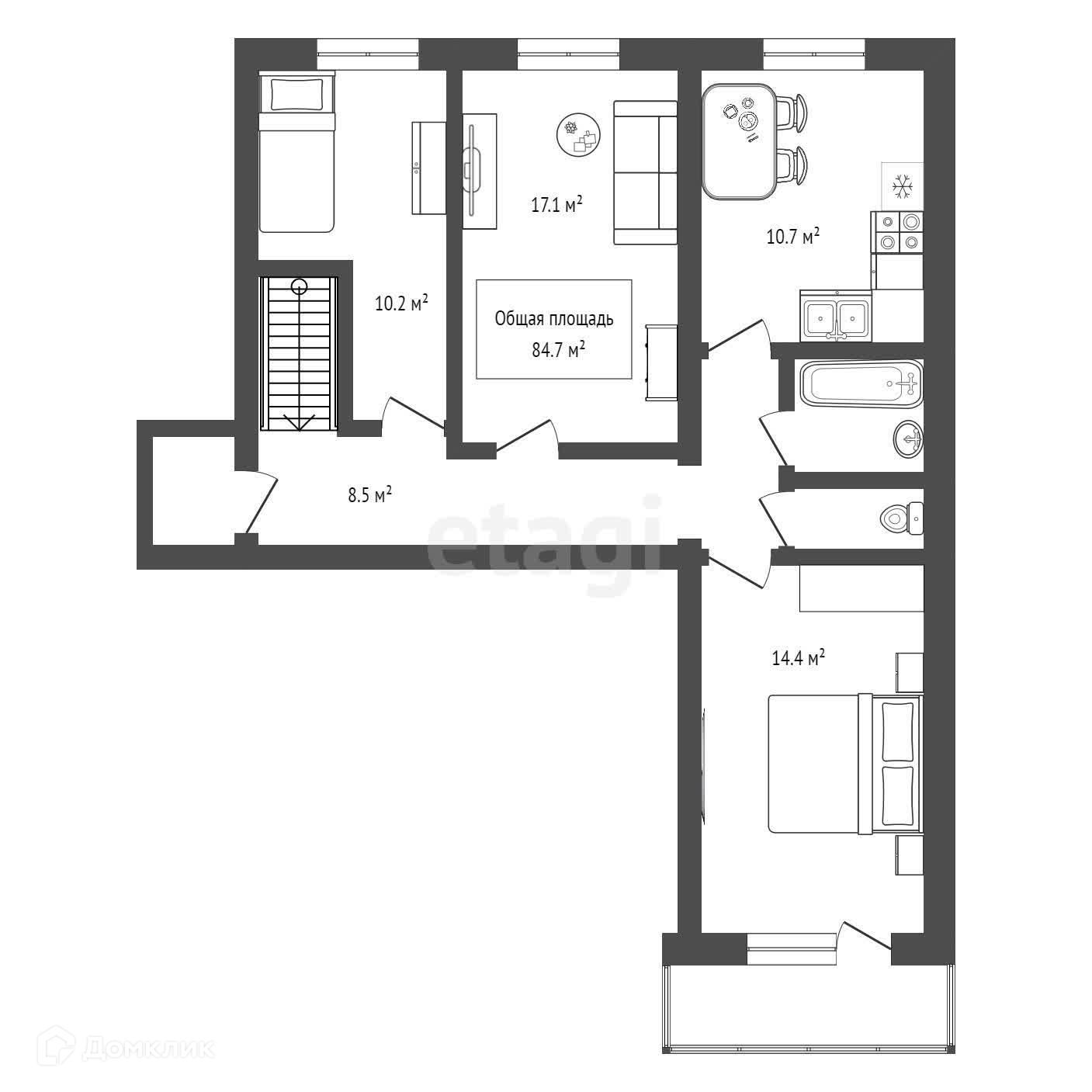 Общая площадь 84.7 м2