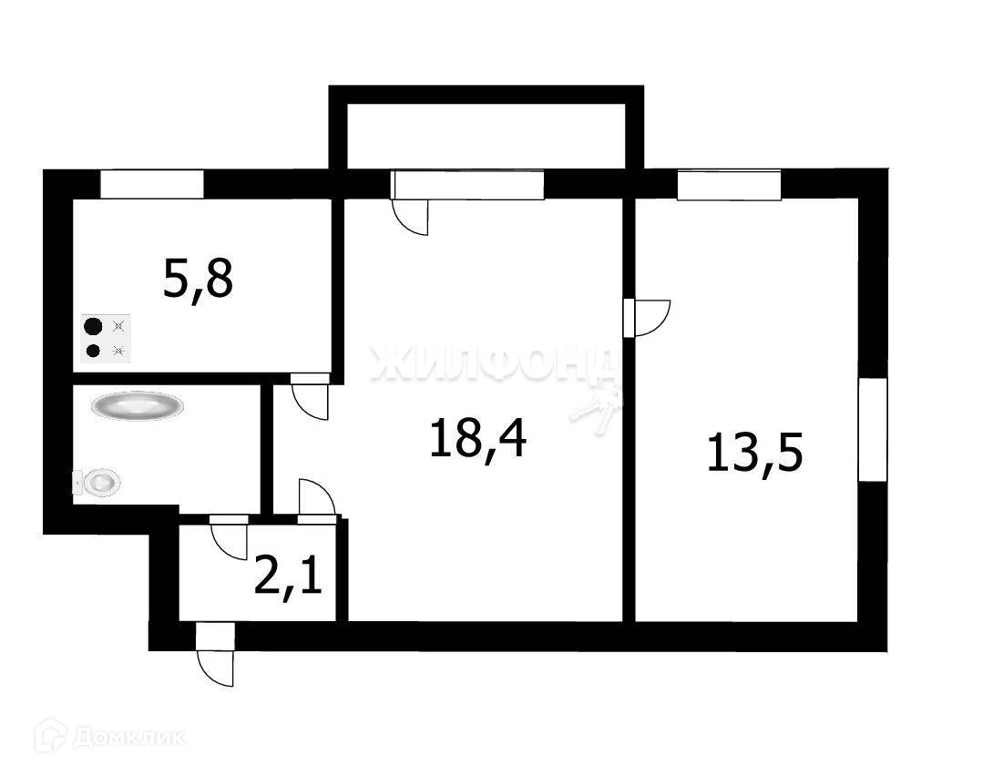 2-комнатная квартира, 43.1 м2, этаж 2 / 3, на продажу в Новосибирске, Новая улица, 15