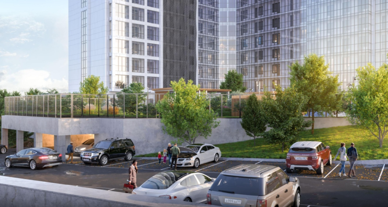На территории есть: подземный паркинг, коворкинг для жителей дома, стандартные и увеличенные машиноместа, велопарковки, зарядки для электромобилей, зоны для хранения велосипедов, детская площадка, work-out зона, зона отдыха и встреч. Закрытая территория комплекса обеспечивает приватность, а круглосуточный консьерж-сервис, видеонаблюдение на всей территории, система охранной сигнализации, система водяного пожаротушения и противопожарного водопровода — комфорт и безопасность.