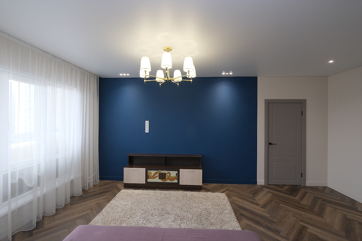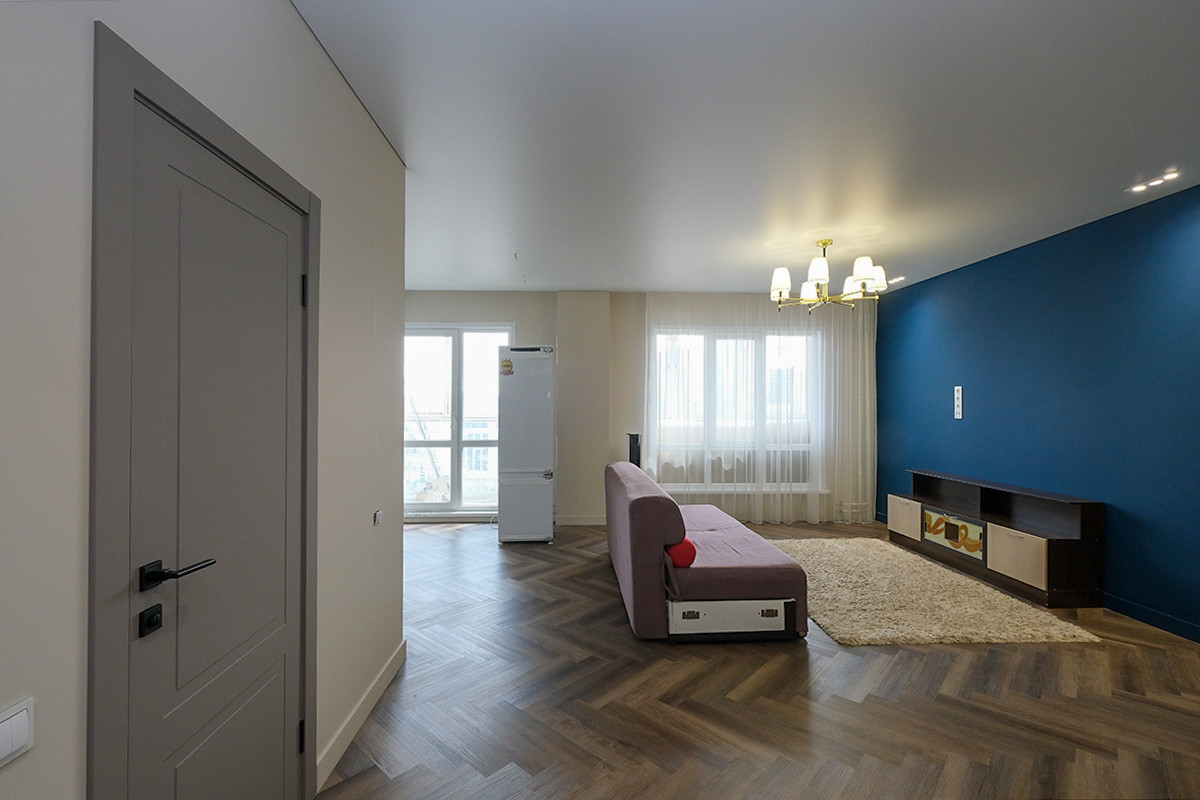 В квартире выполнен качественный ремонт с использованием современных материалов. Напольное покрытие кварц винил который не боится влаги.  Проведены коммуникации для установки кондиционера. В ванной комнате водонагреватель скрытого монтажа и тёплый пол. Продуманное зонирование освещения. Интернет заведён до розетки в ТВ зоне.