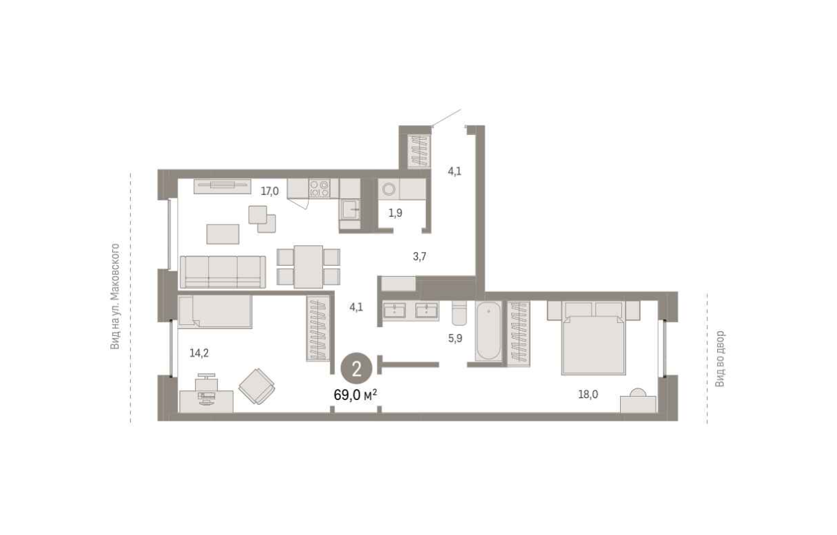 Общая площадь 69 м2
