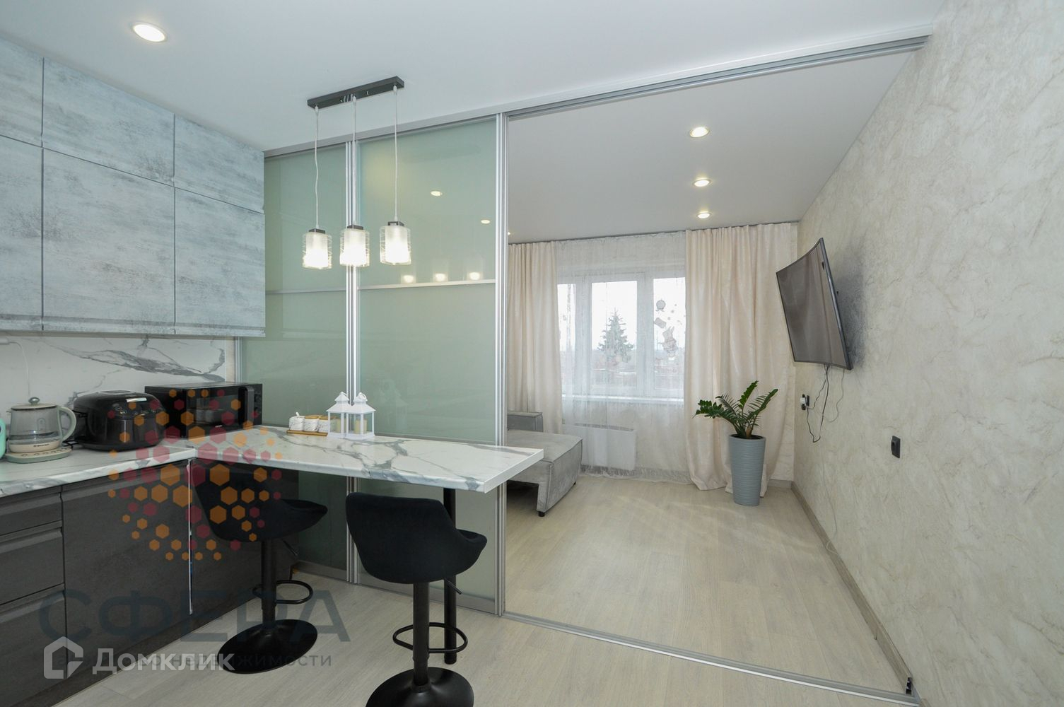 Двухкомнатная квартира студия с большой кухней-гостиной 19 кв.м. и жилой комнатой 15 кв.м., с отличным ремонтом!