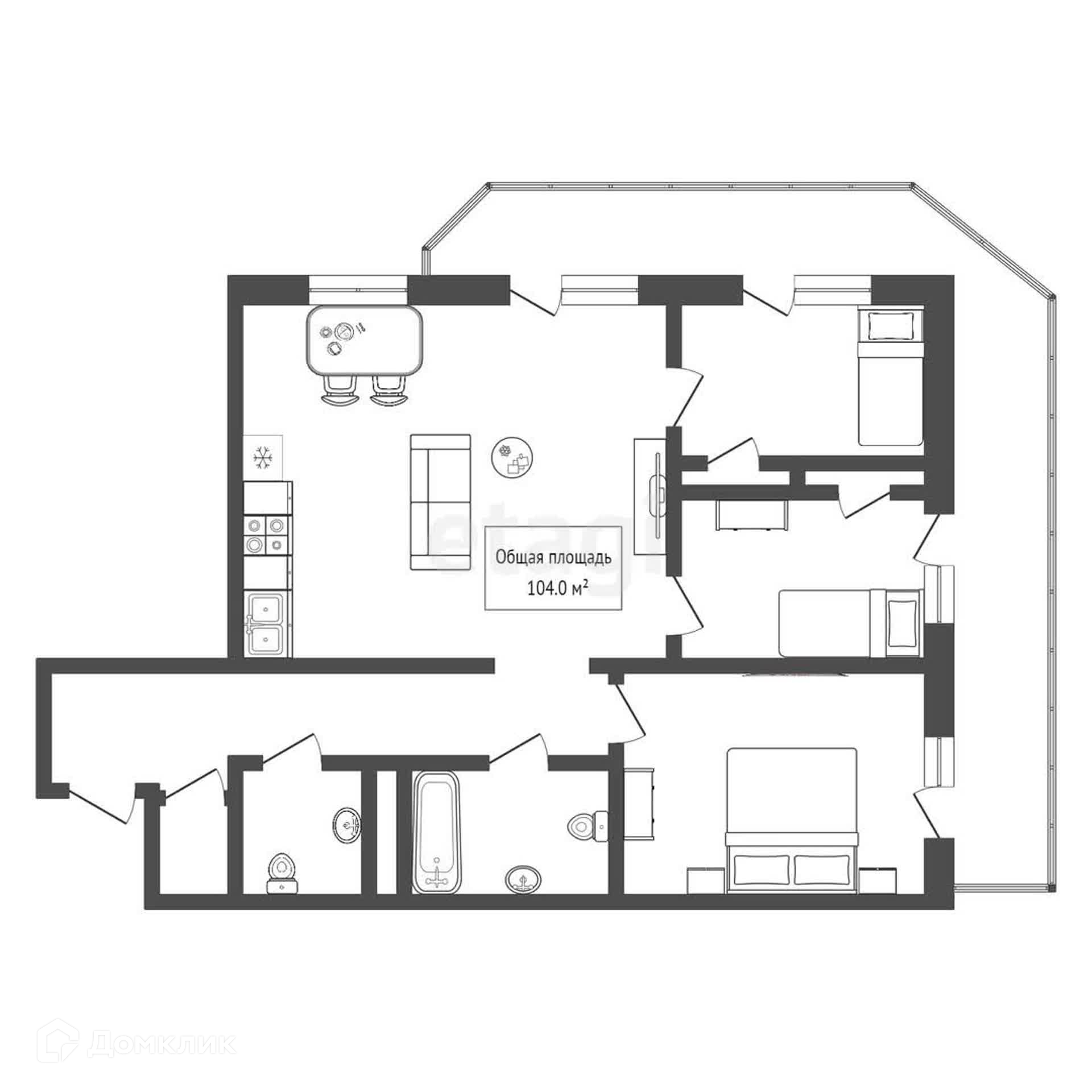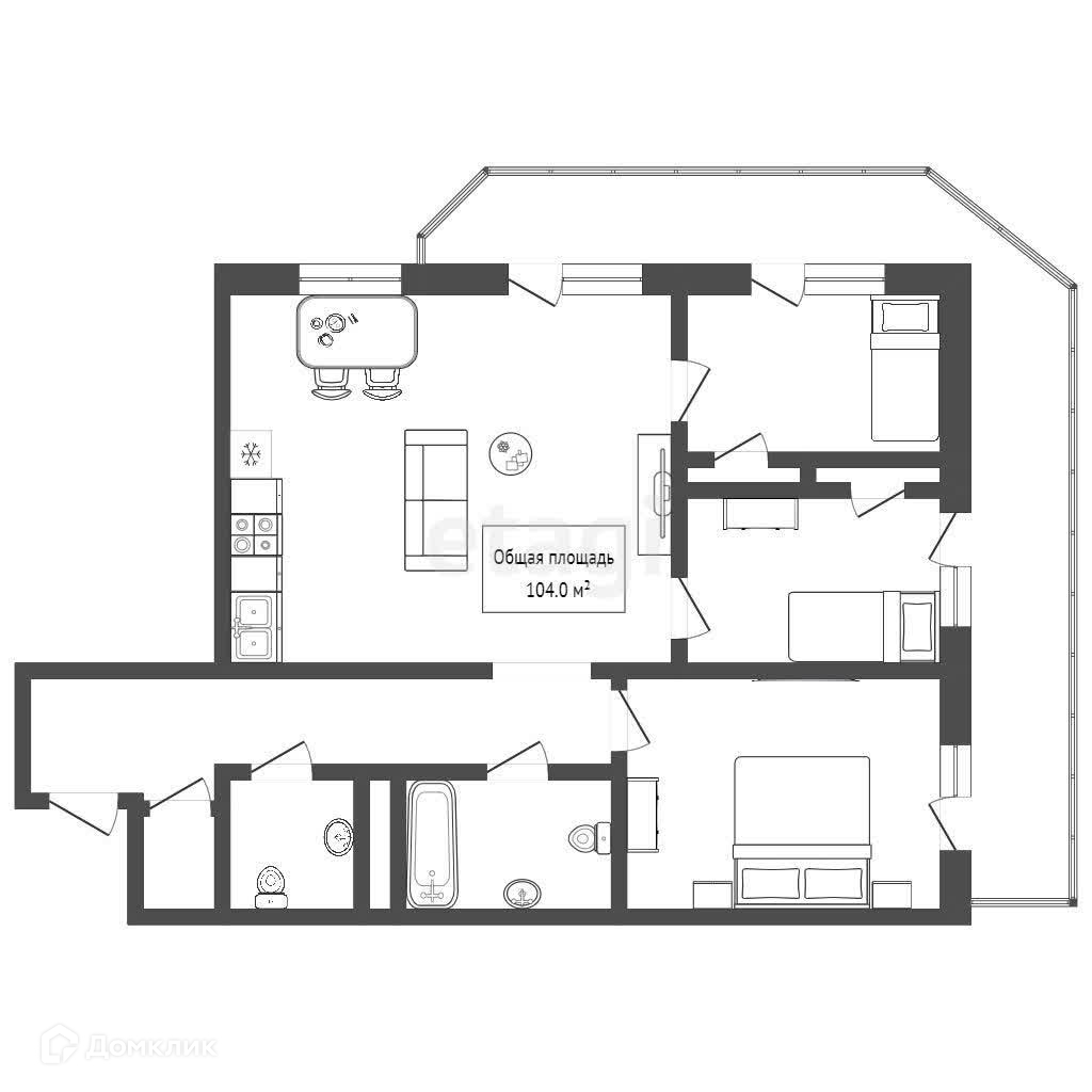 Общая площадь 104 м2