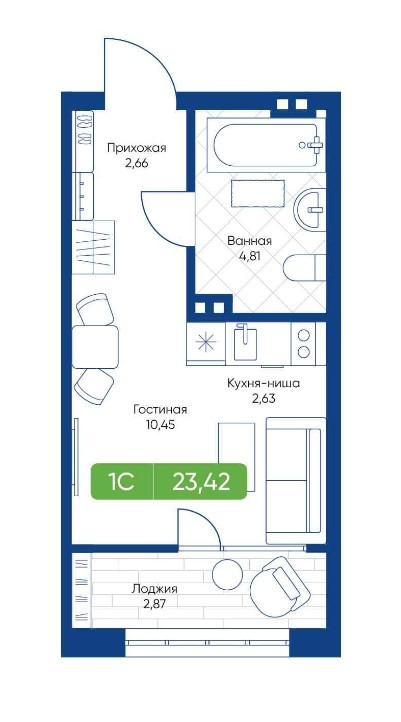 Общая площадь 23.42 м2