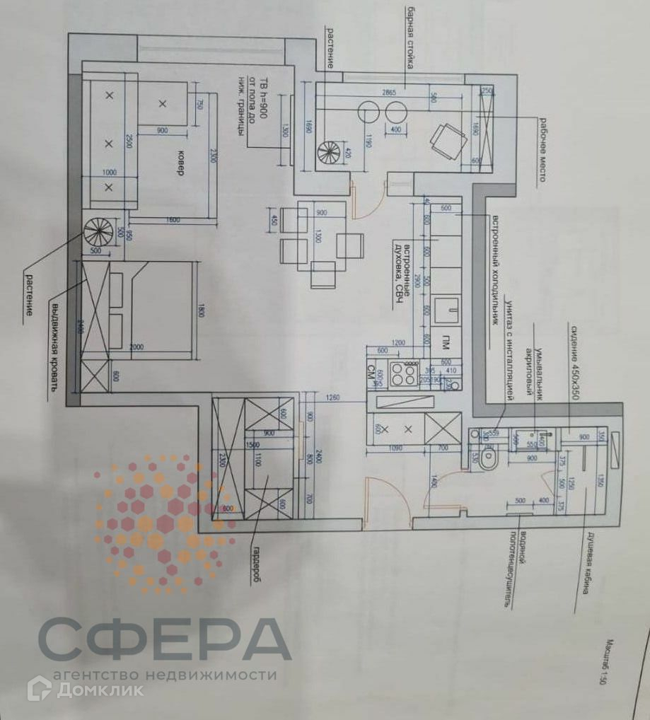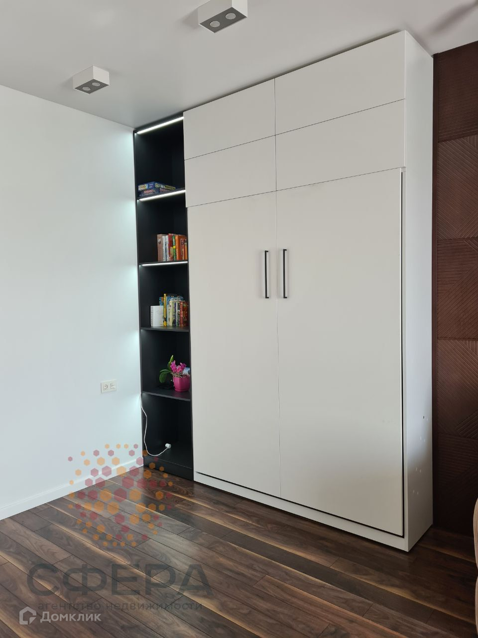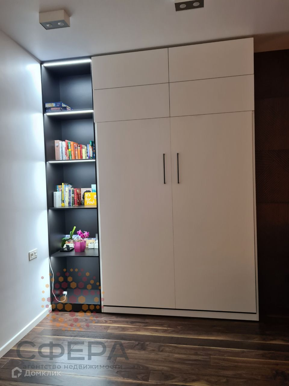 - вся мебель выполнена по индивидуальному заказу с учетом особенностей планировки и дизайнерского проекта : кровать с подъемным механизмом с зоной хранения, кухня, прихожая, гардеробная.
