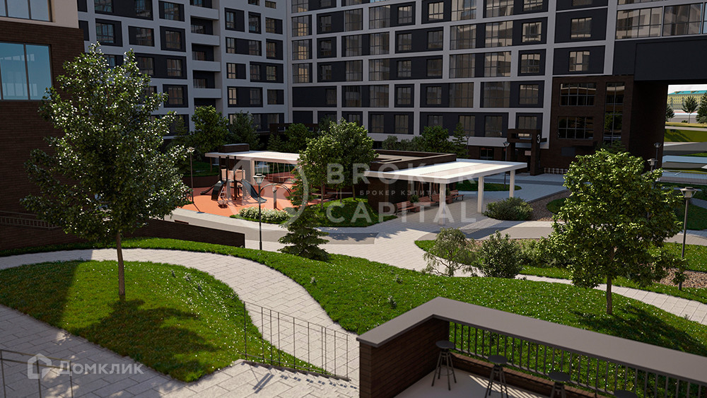 Благоустройство придомовой территории представляет собой зеленую зону с площадками для игр детей, отдыха взрослых и занятия спортом. Заезд автомобилей на территорию двора не предусмотрен, за исключением транспорта экстренных служб и доставки строительных материалов. Для парковки автомобилей имеются 3 уровня подземной парковки. В составе комплекса имеется вся необходимая инфраструктура: продуктовый магазин, аптека, фитнес-клуб, СПА-комплекс с бассейном.