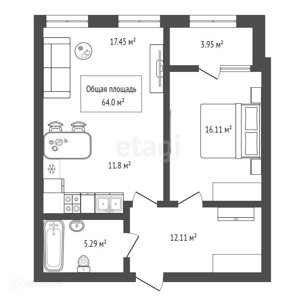 Общая площадь 64 м2