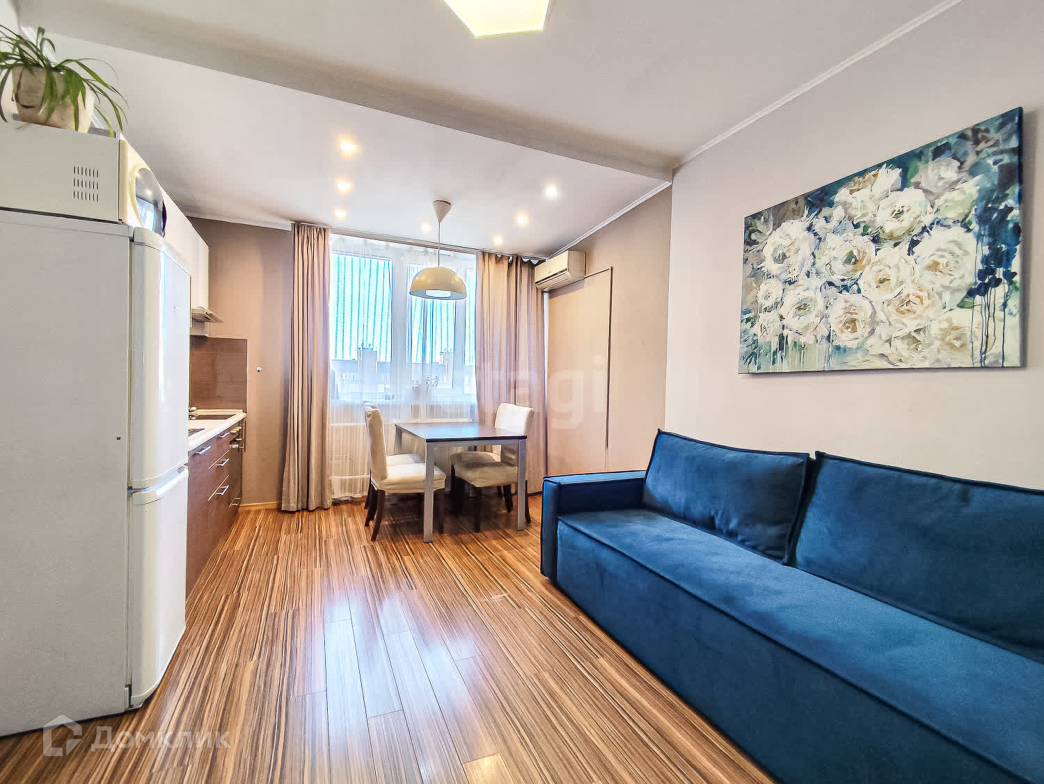 Кухня - гостиная с вместительным встроенным шкафом, кондиционером и полностью оборудованной кухней - все останется новому собственнику! в квартире выполнен качественный ремонт.