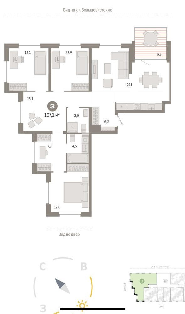 4-комнатная квартира, 100 м2, этаж 6 / 9, на продажу в Новосибирске, Большевистская улица, 88