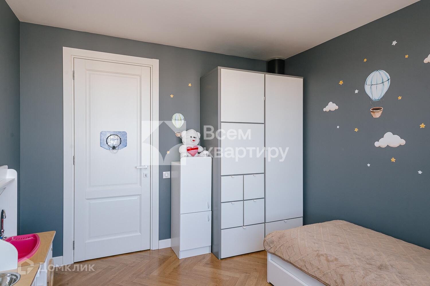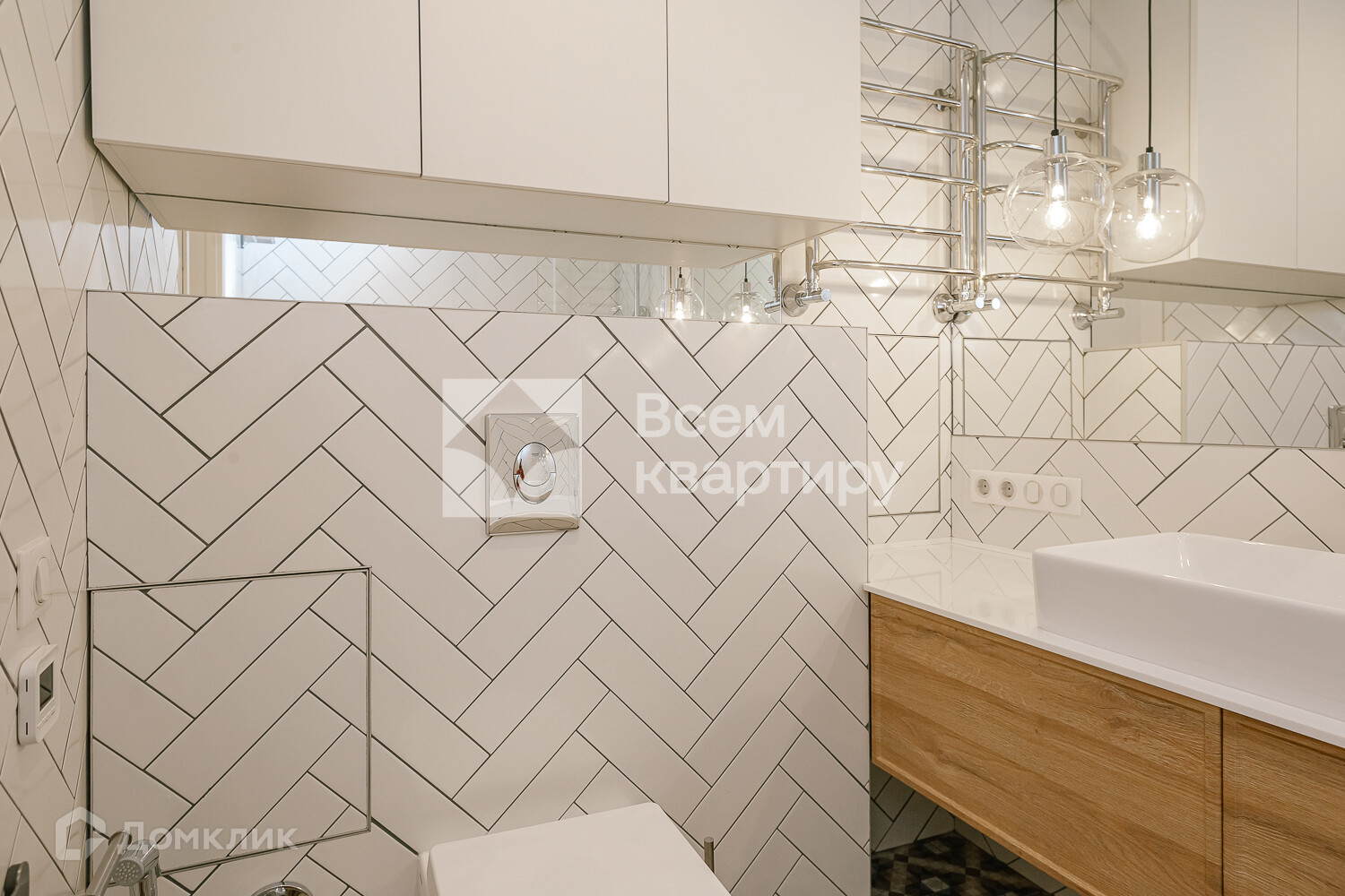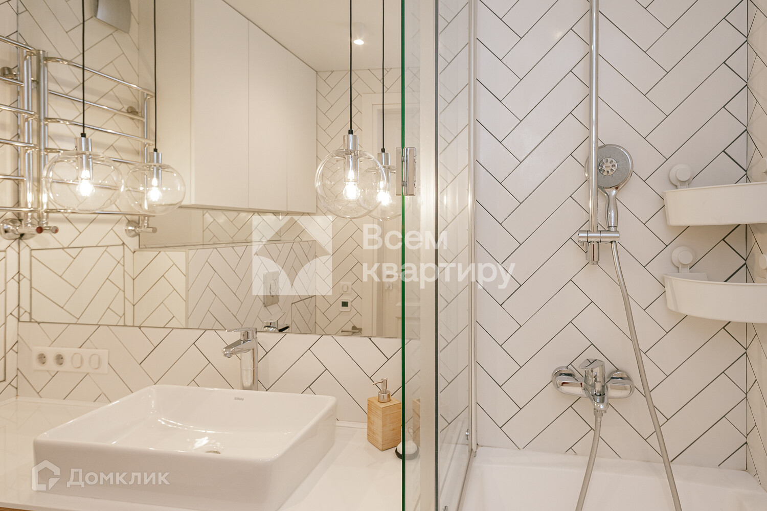 шкафами, встроенная вытяжка Bosch, встроенная варочная поверхность Midea, встроенный духовой шкаф Midea, встроенная посудомоечная машина Midea, измельчитель, холодильник Midea, диван, стол и стулья на кухне. В комнатах вся мебель, которая есть на фотографиях, телевизор LG. В ванной комнате стиральная машина Hotpoint Ariston с функцией cушки, водонагреватель termex.