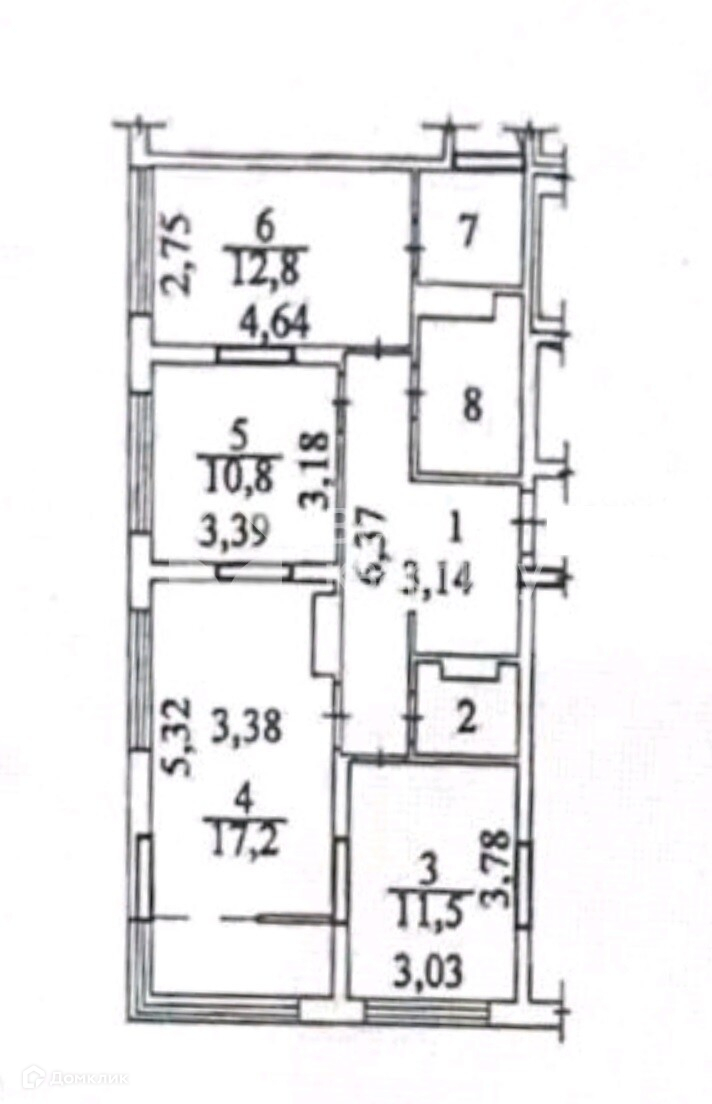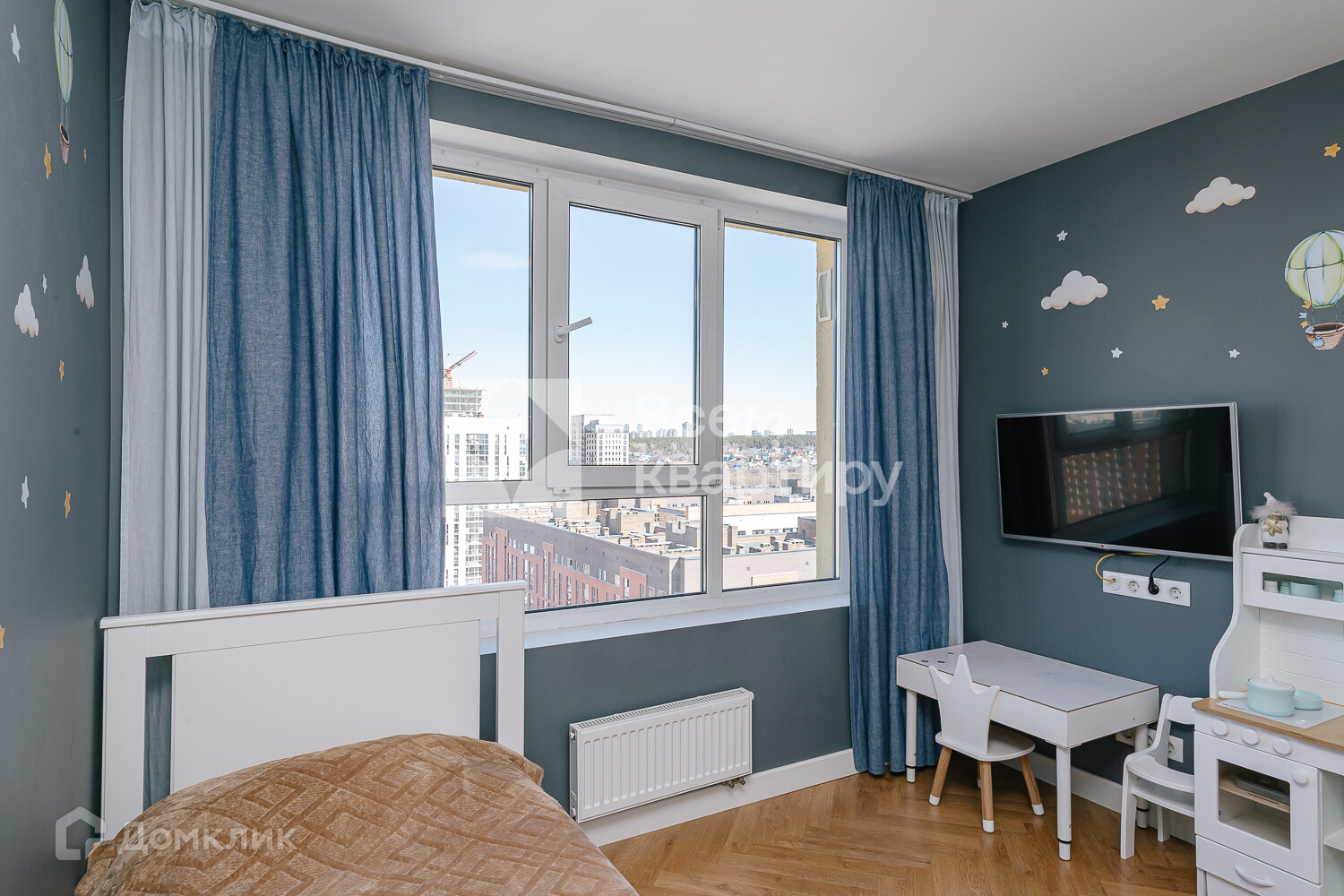 Квартира с объединенной кухней-гостиной, тремя спальнями,