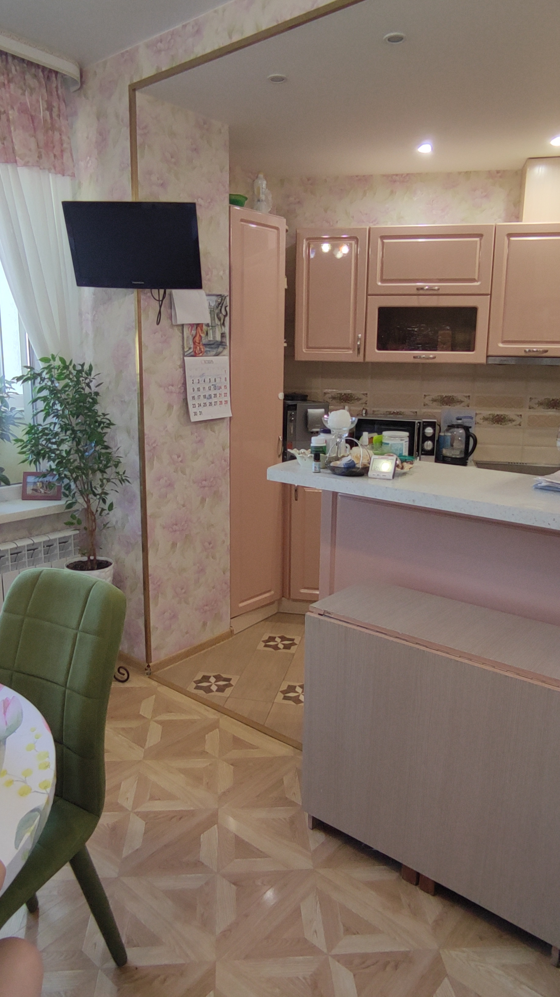 -Закрыт прямой проход из гостиной в кухню (изоляция комнаты) + навешены дополнительные радиаторы отопления со стороны