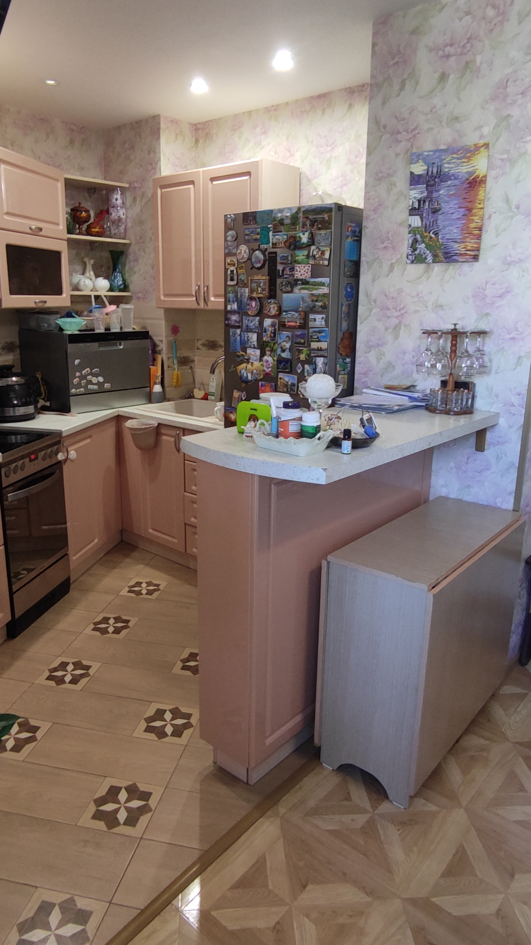 -Кухня изготовлена по индивидуальному заказу по замерам, дополнительные розетки + освещение.