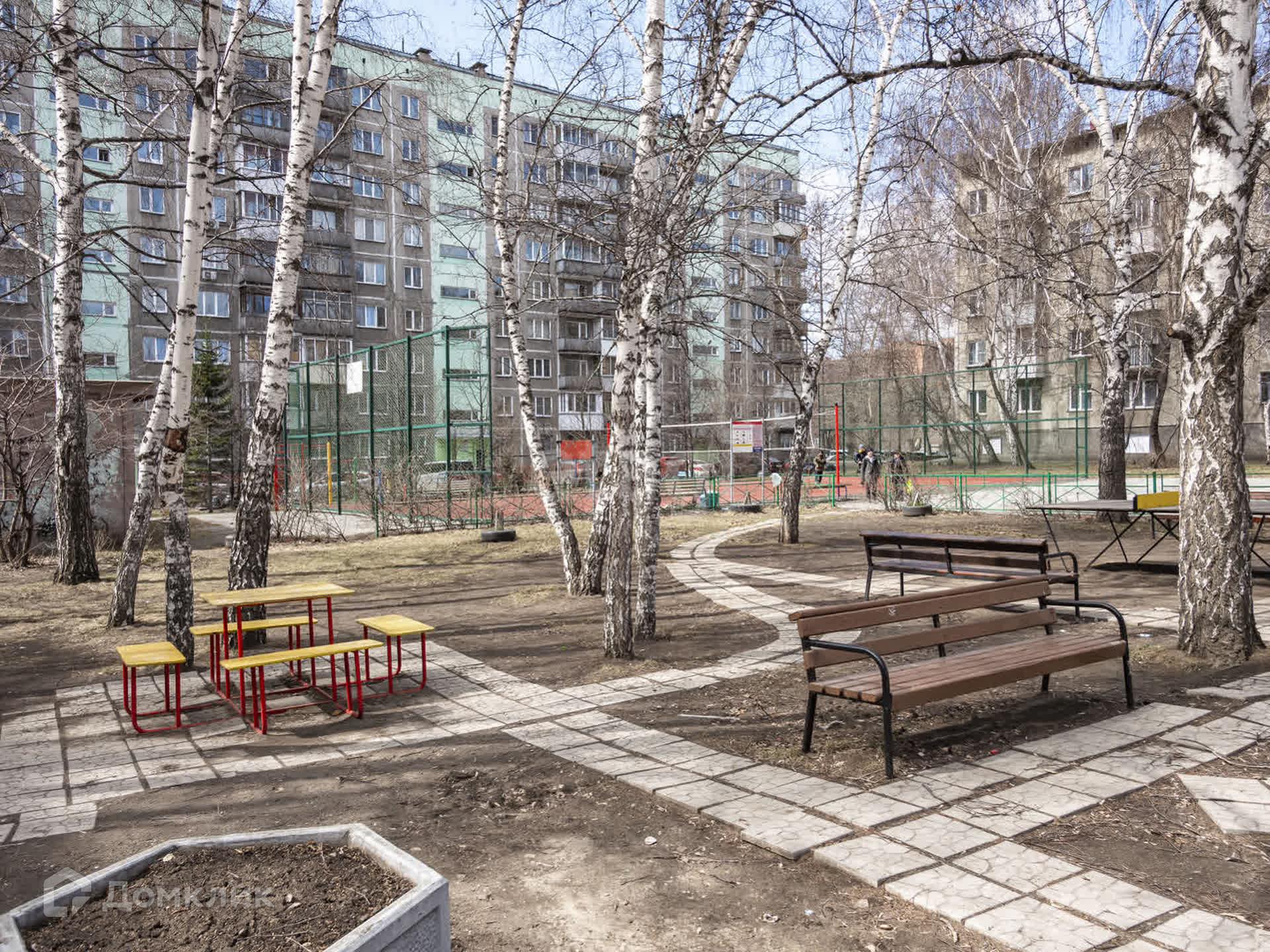Напротив дома находится школа и детский садик.