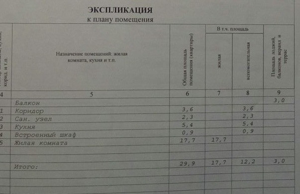 Общая площадь 29.9 м2