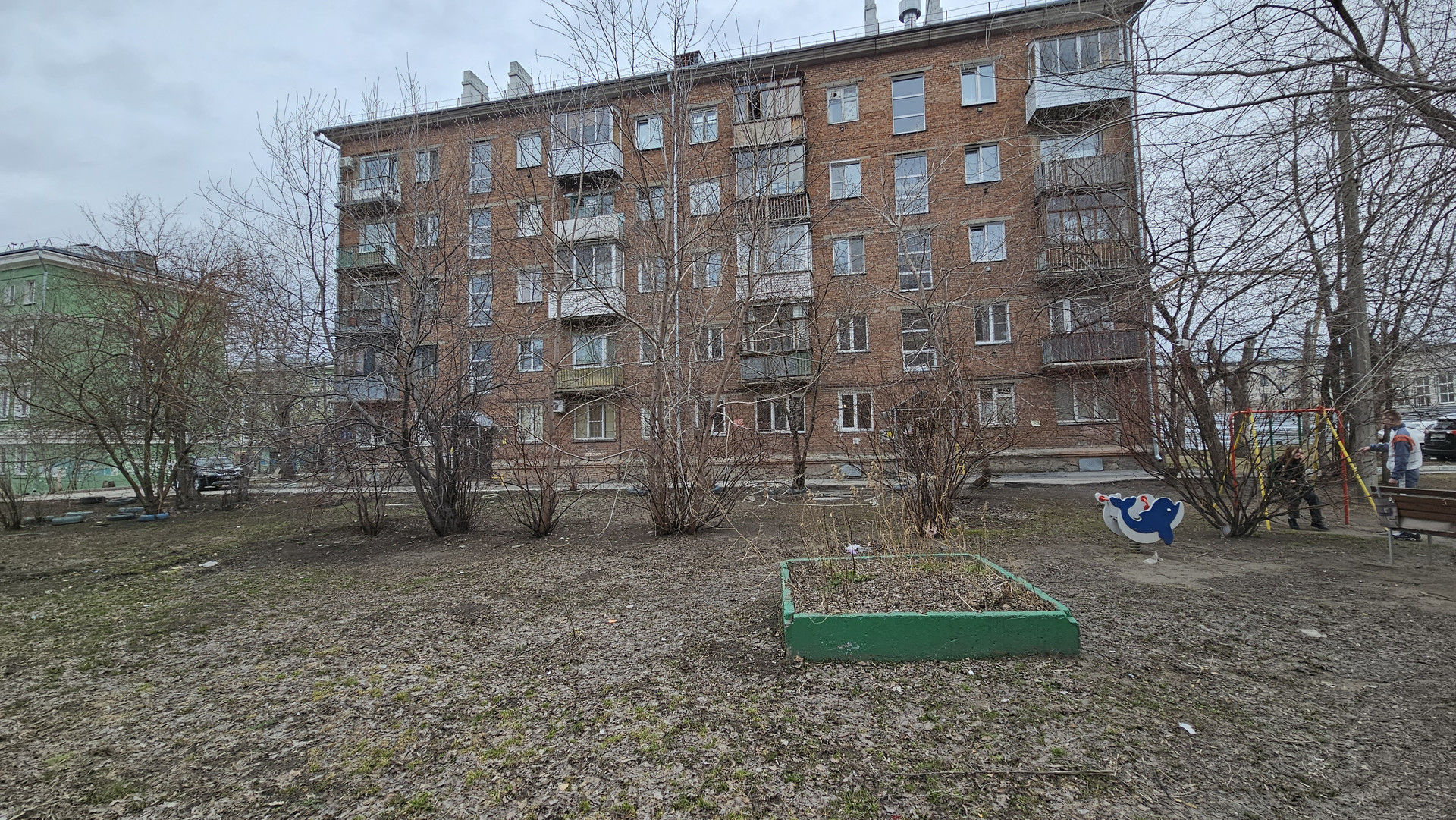 Двор без машин и можно погулять во дворе.