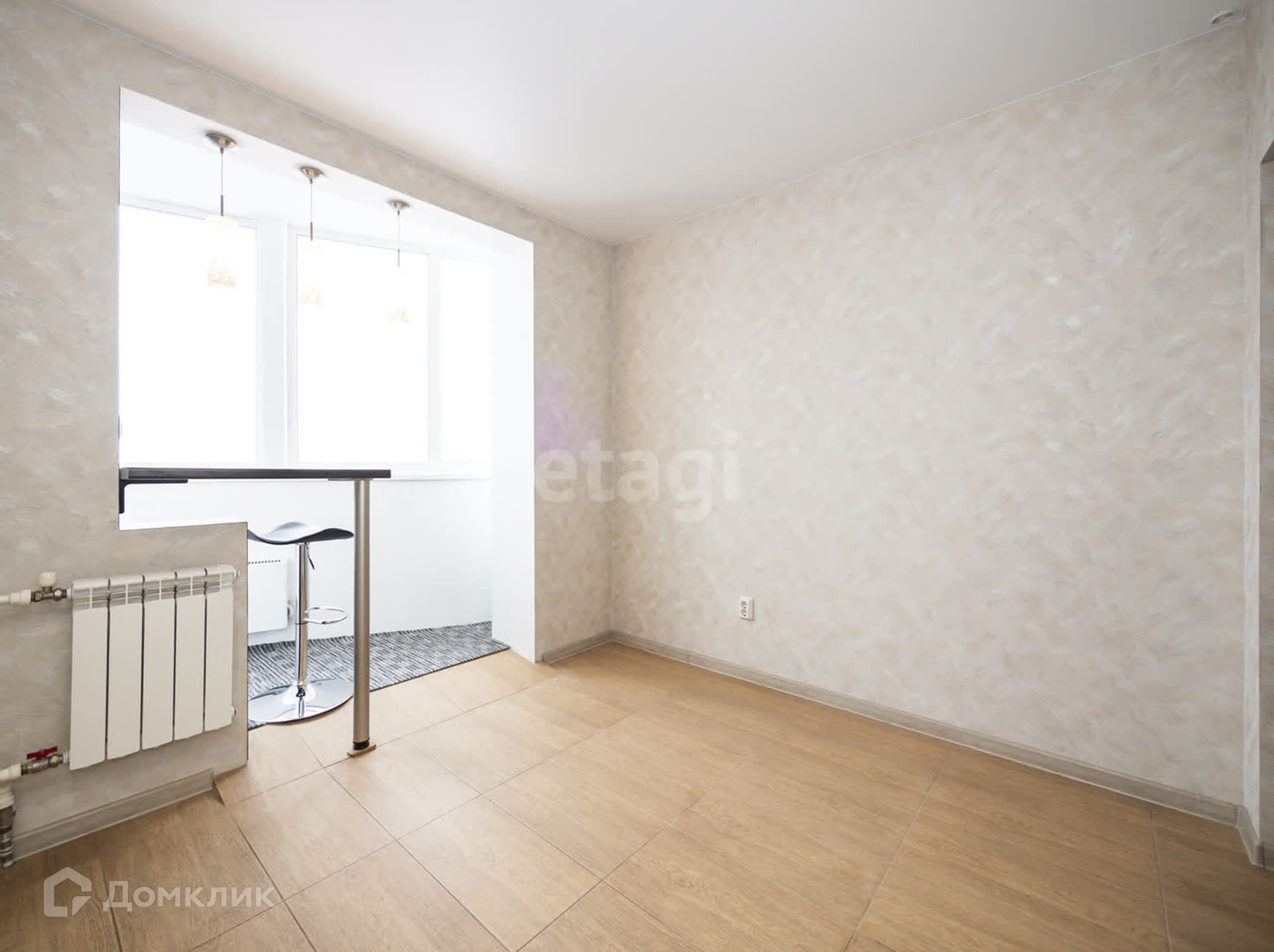 Балкон утеплен и соединен с кухней, что создает ощущение простора и индивидуальности.